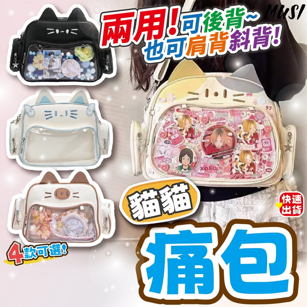 [隔日發貨]痛包 後背包 痛包後背包 可後背可側背 貓咪造型痛包 雙肩痛包 背包 雙肩包 後背痛包 大容量包包 斜背包