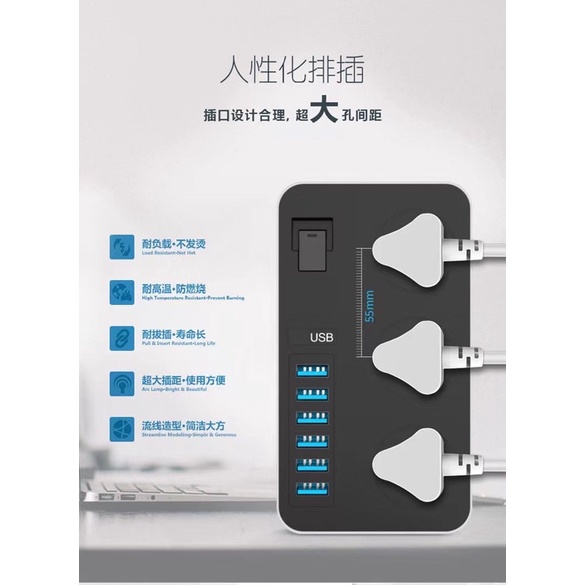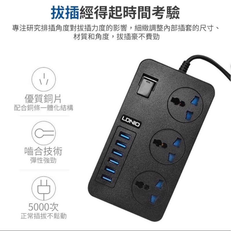 LDNIO/USB 六孔 多功能排插/大功率/插座/智慧充電 3.1A/安全開關/面板多孔