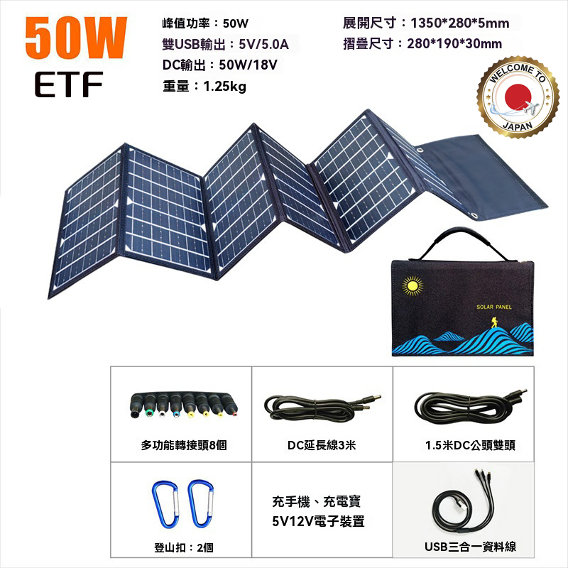 隔日🚀達【日本進口🥇太陽能板】戶外露營 太陽能充電器 發電板 可折疊 高轉化率ETFE 30W-50W USB+DC快充