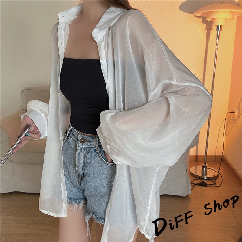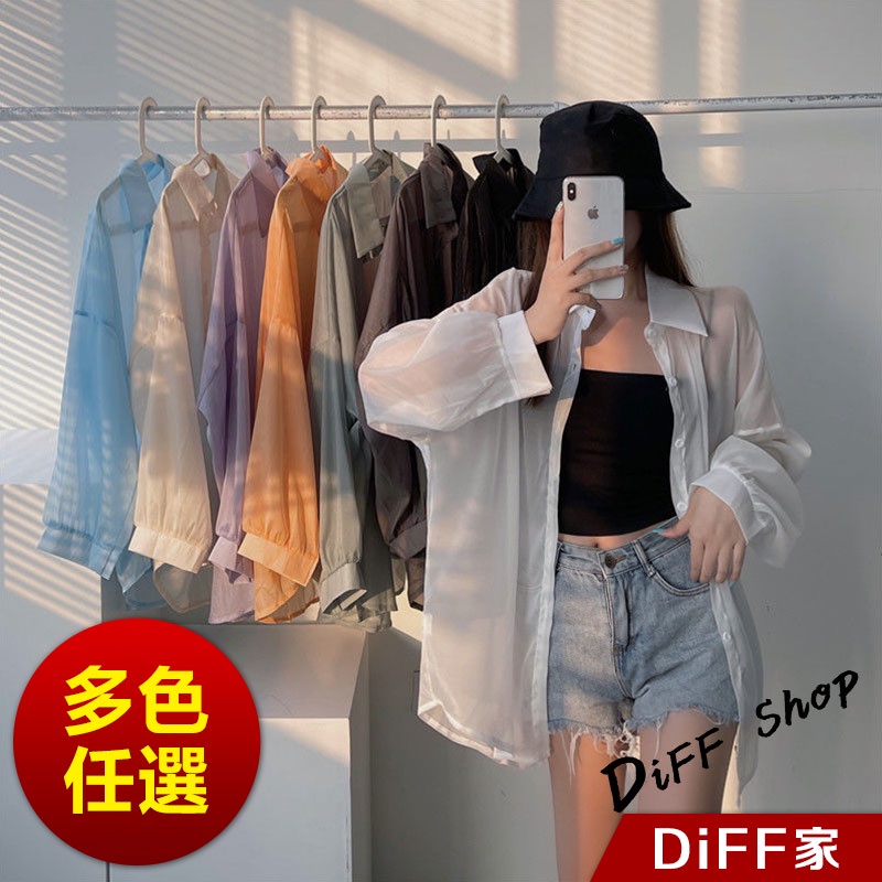 【DIFF】韓版休閒寬鬆薄款微透長袖防曬外套 上衣 女裝 衣服 外套 薄外套 罩衫 防曬外套 長袖上衣【J217】
