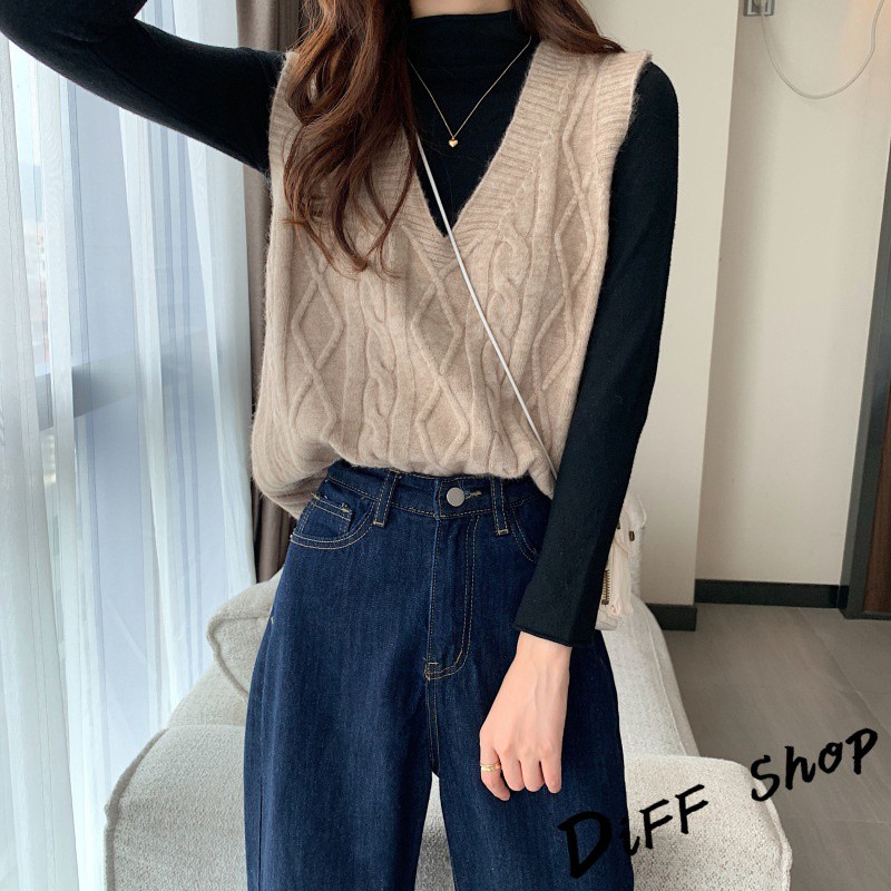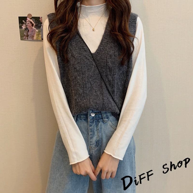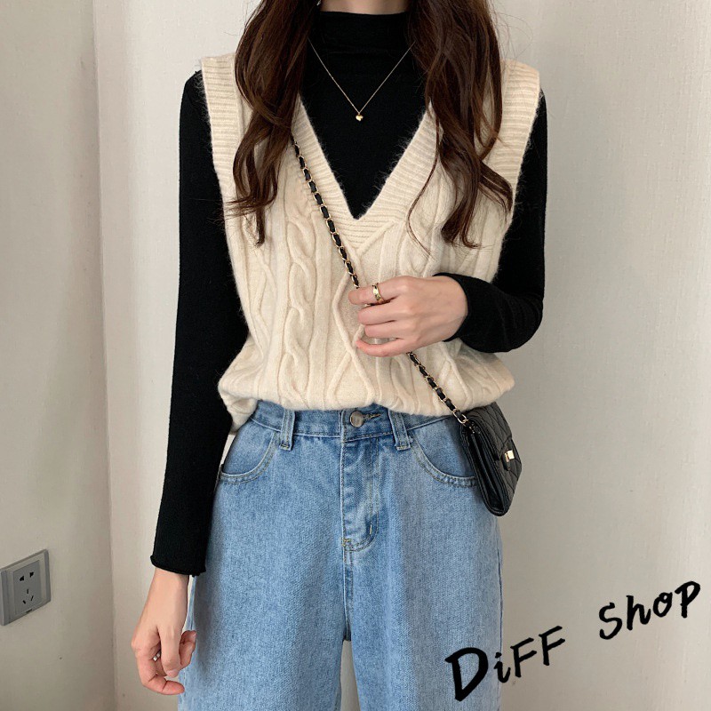 【DIFF】韓版寬鬆V領背心毛衣 針織上衣 女裝 衣服 冬季女裝 秋冬女裝 針織背心 冬裝 背心 保暖上衣【S88】