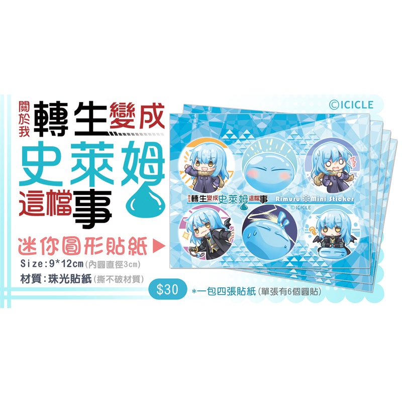 【IC小舖】《關於我轉生變成史萊姆這檔事》迷你圓形貼紙(一包4張)