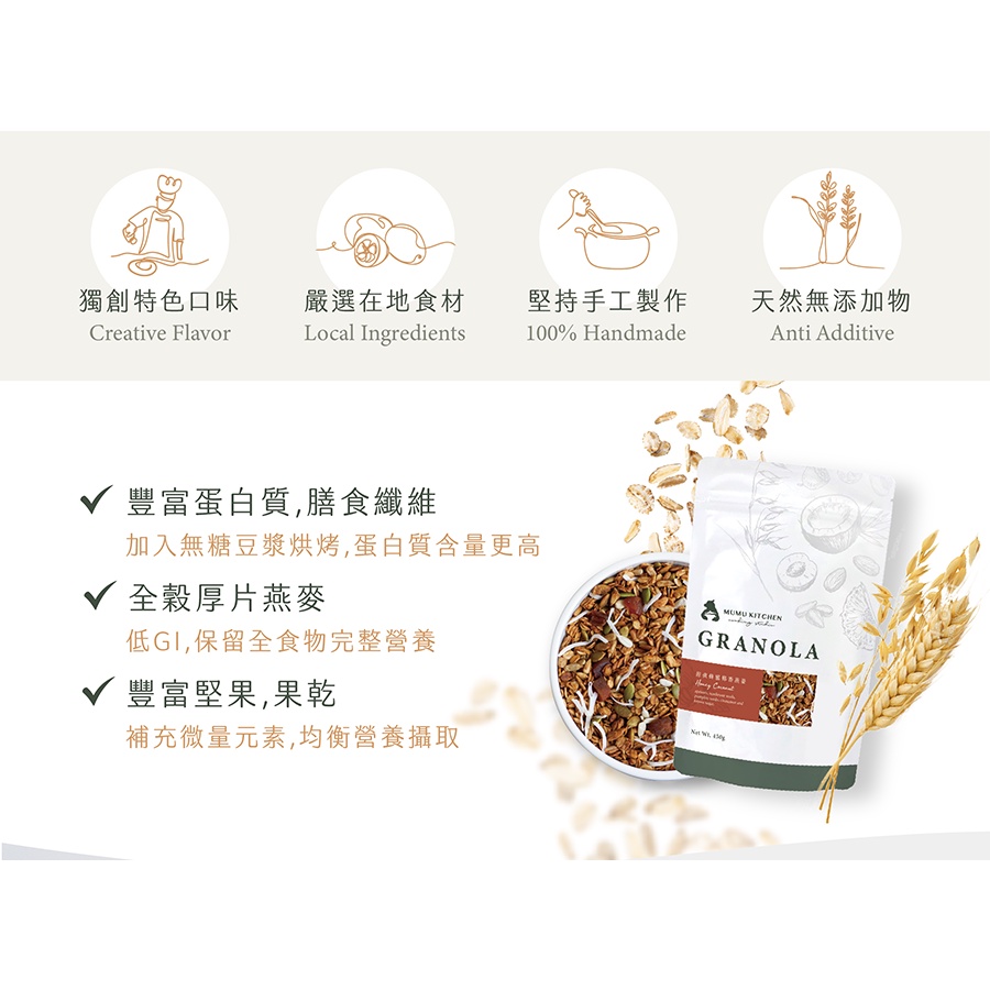 《Mumu Kitchen》經典蜂蜜椰香燕麥 家庭包450g|烘烤燕麥|手工燕麥|燕麥脆片|燕麥片|