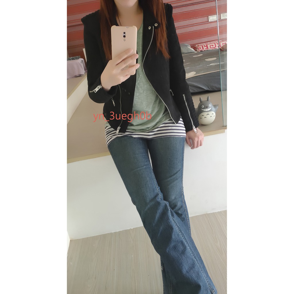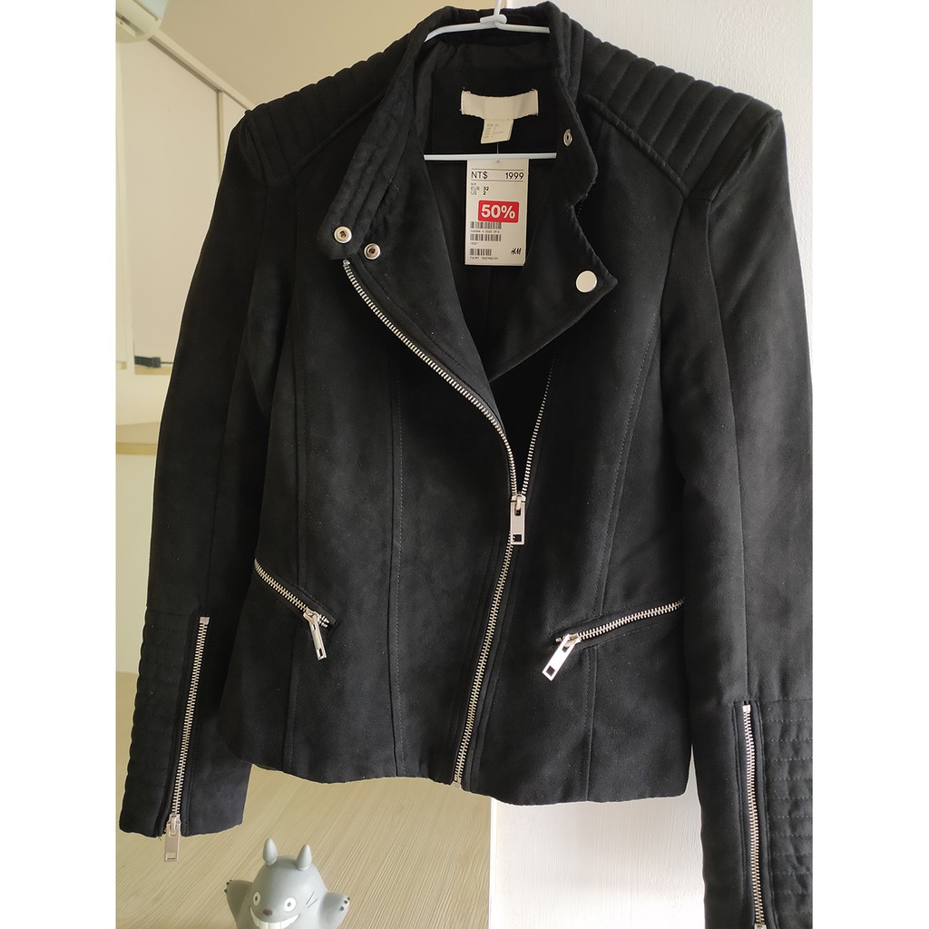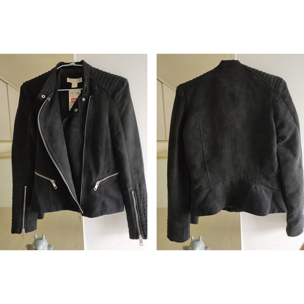 全新H&M 帥氣挺版麂皮絨軍裝機車夾克外套 龐克黑