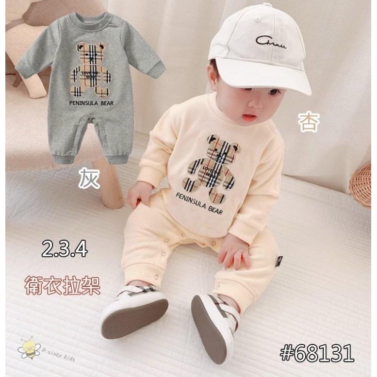 百元童裝 秋季 格文小熊長袖連身衣 灰80