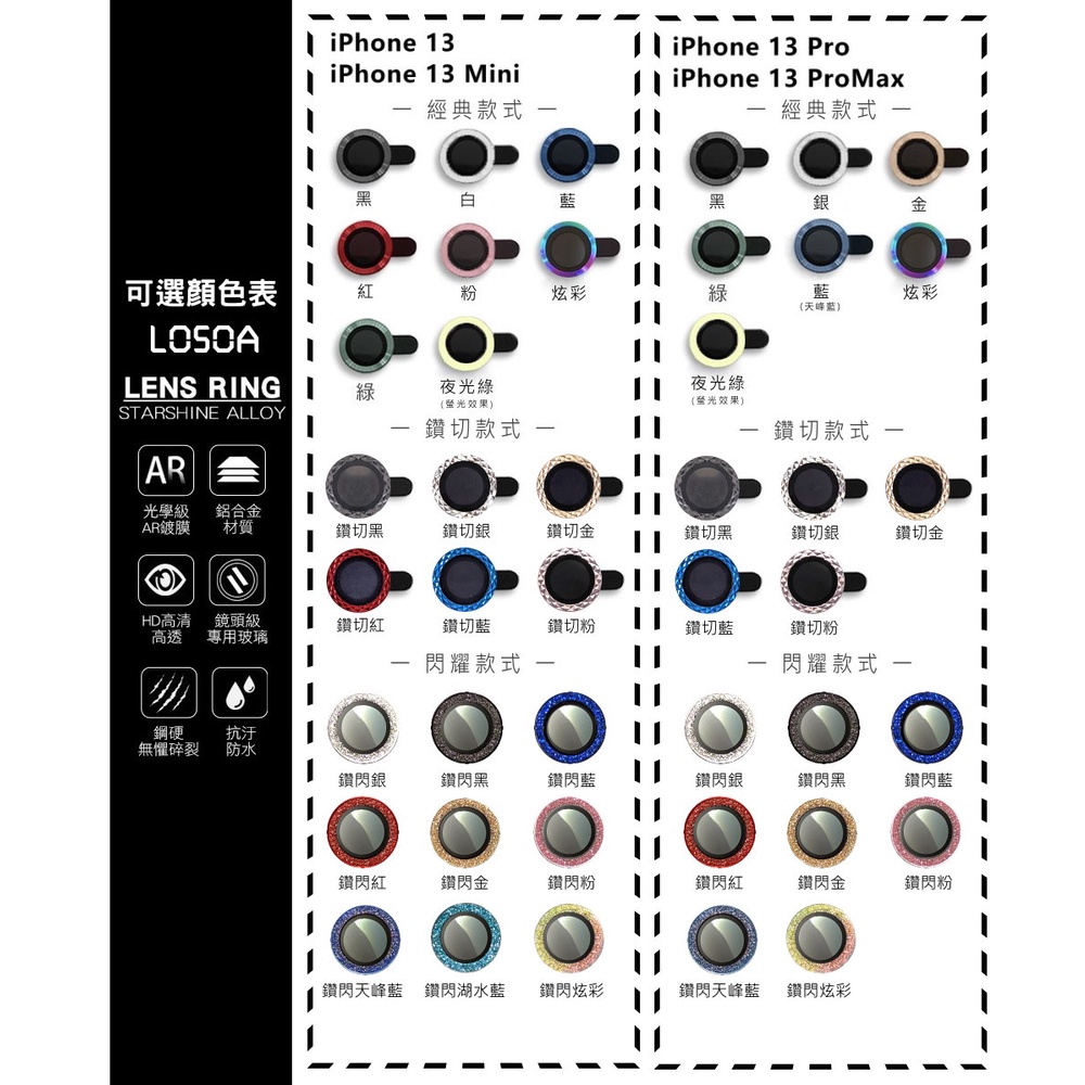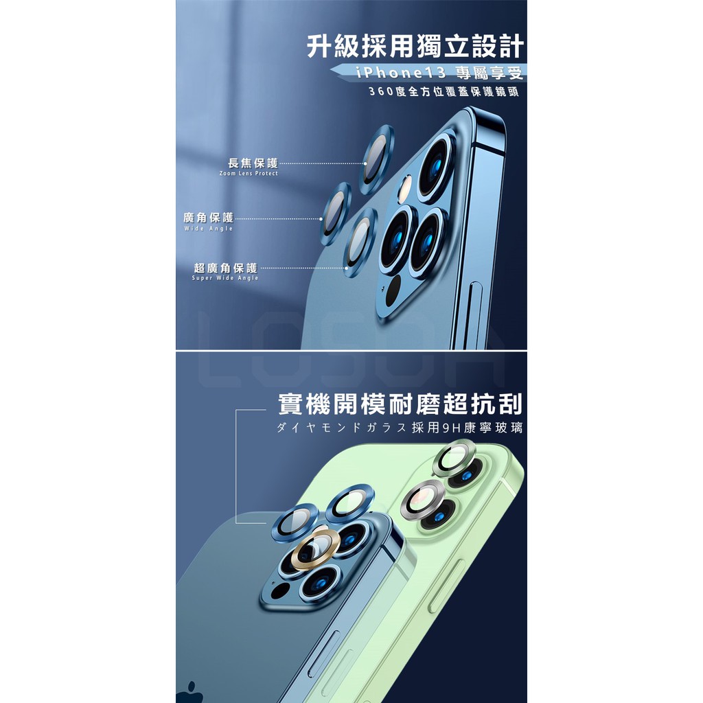 LOSOA 黑豹鑽石鋁鏡頭保護環 iPhone 13 系列專用 13/13pro/13mini/13promax 鏡頭膜