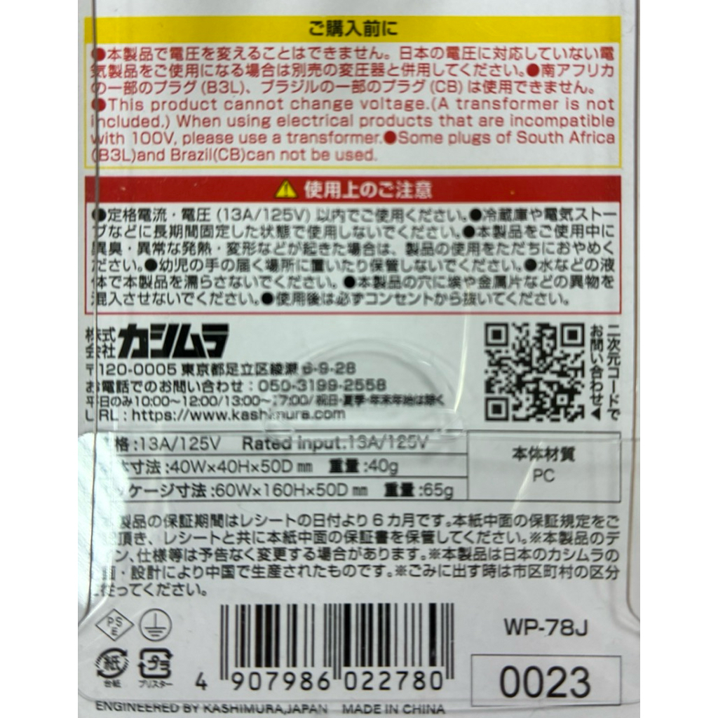 kashimura轉接插頭(WP-78J)