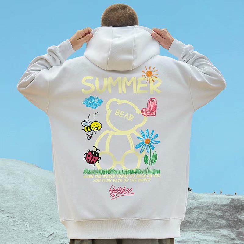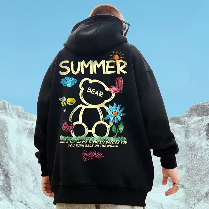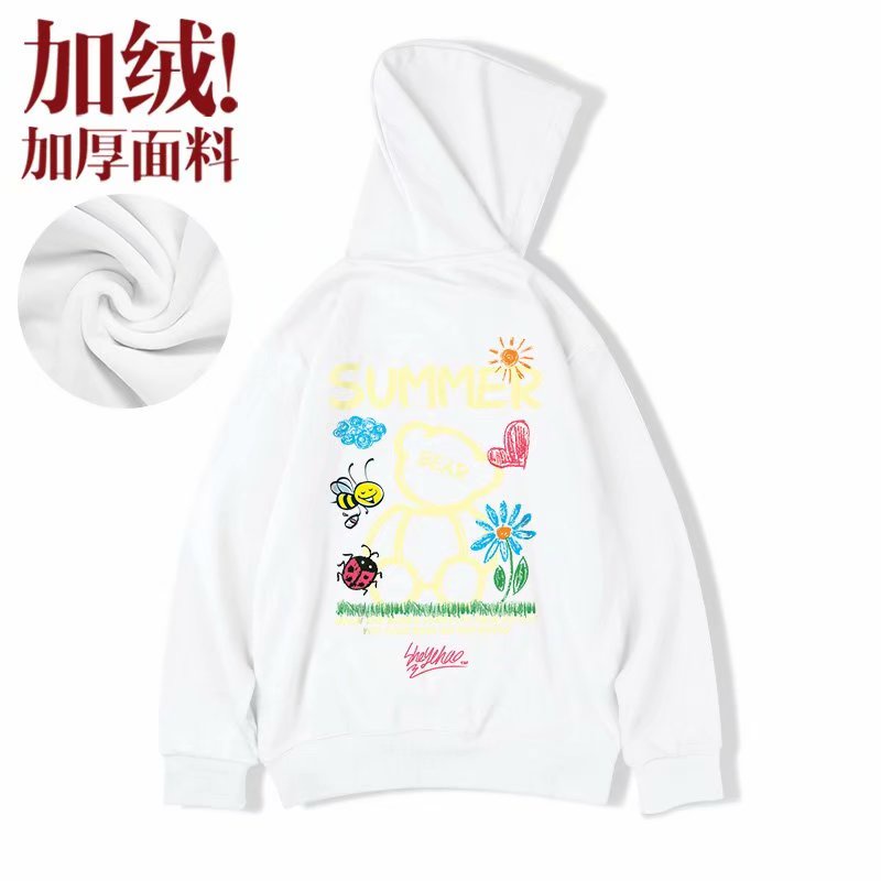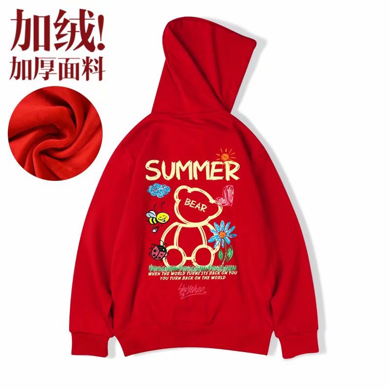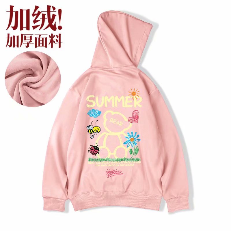 最後出清▼連帽T恤 秋冬情侶韓版SUMMER小熊印花大尺碼加絨長袖上衣大學T衛衣【NLGNFF-Q523】