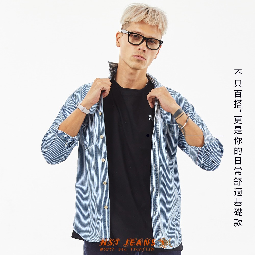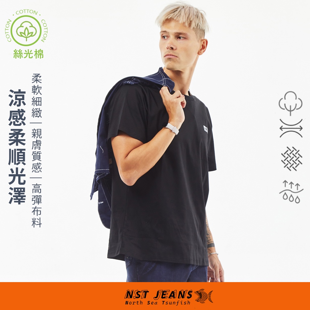 【NST Jeans】恆逸・經典|Classic 柔順光澤 高規絲光棉 曜岩黑 男彈性短袖上衣T恤 加大尺碼 80000