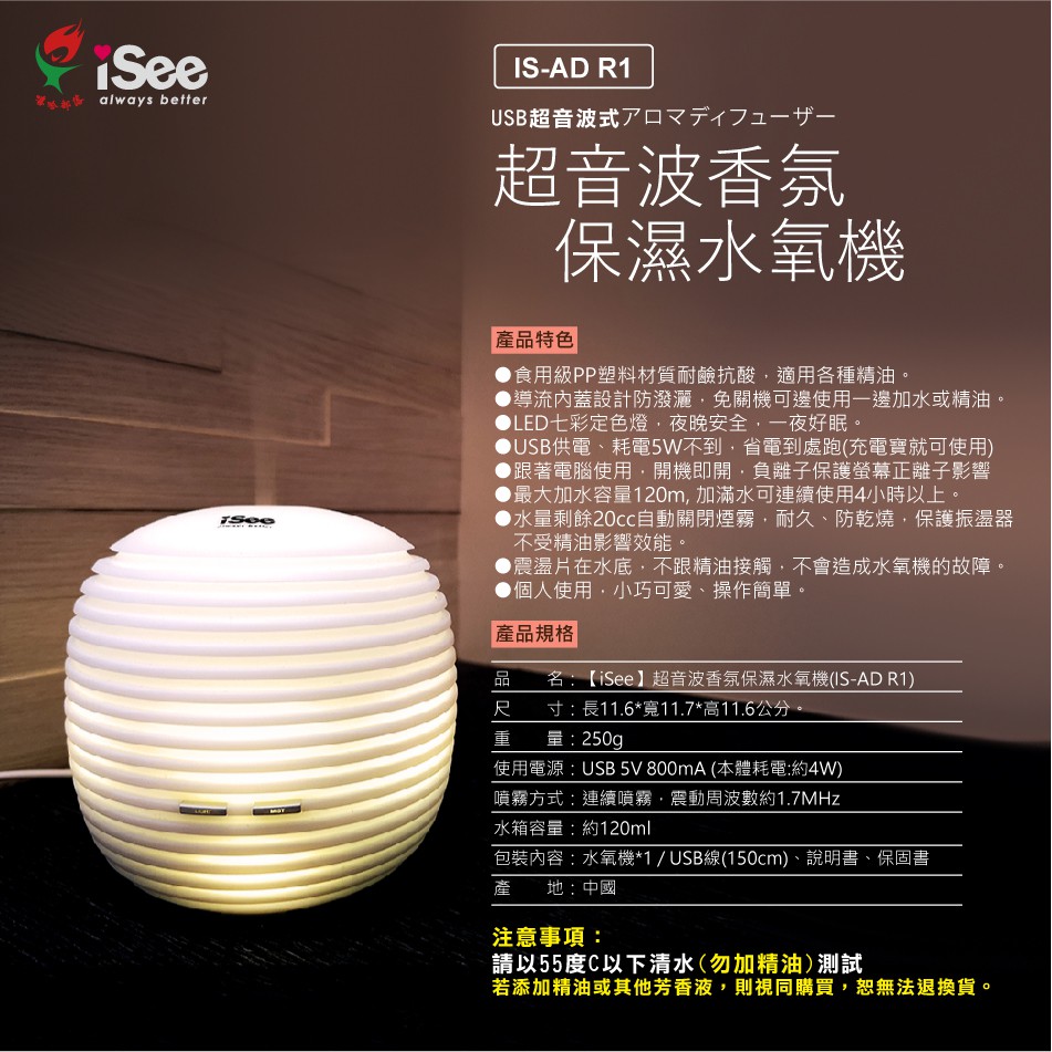 iSee超音波香氛保濕水氧機