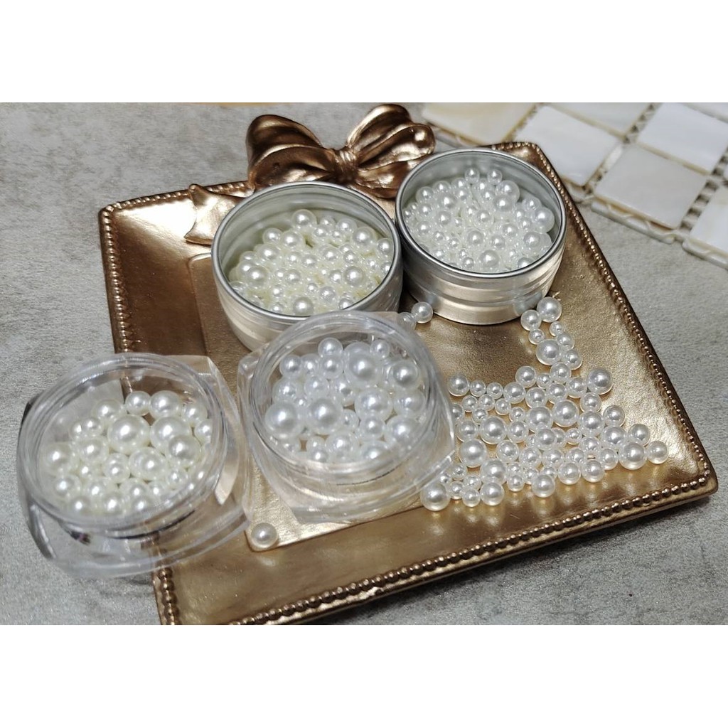 【俏美甲】無孔圓形珍珠 1.5MM珍珠 美甲圓形珍珠 米白色珍珠 美甲圓珠 美甲飾品 光療指甲油膠 無孔珍珠