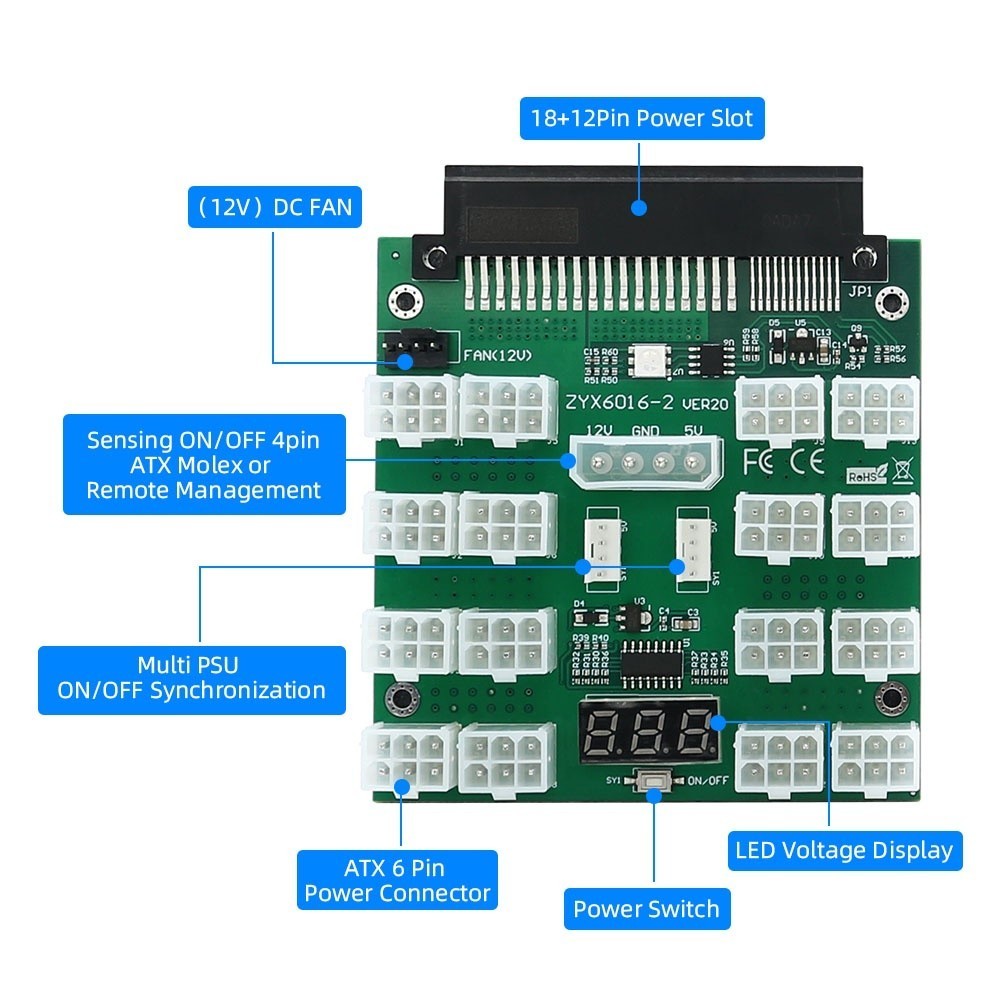 創客數碼 ♞,♘,DELL 挖礦分線板 ATX 16 端口 6Pin 電源模塊適用於戴爾 750W 1100W 2000