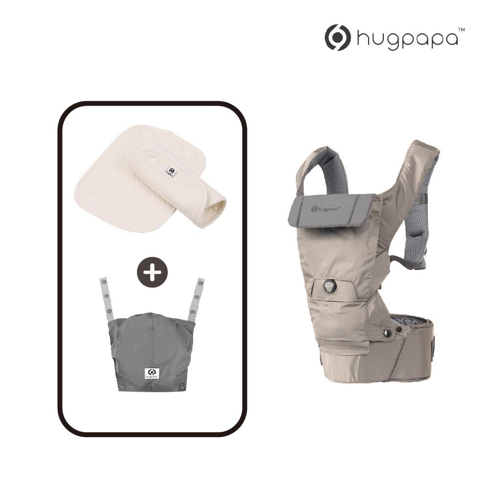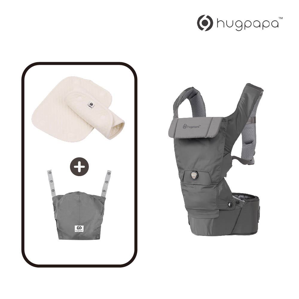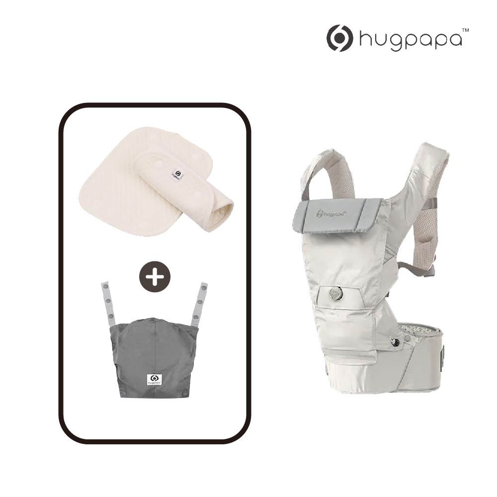 【hugpapa】 韓國嬰兒透氣減壓輕背帶側口水巾組合 新生兒腰凳背巾 滿月送禮 嬰兒背帶
