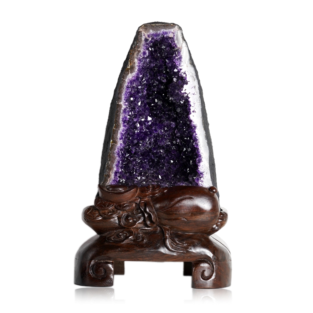 【正佳珠寶】紫水晶 頂級烏拉圭 紫晶洞 14.7kg 紫水晶擺件|黑檀木座