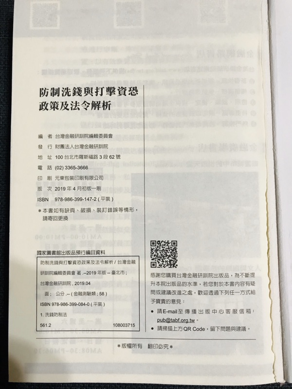 防制洗錢與打擊資恐人員測驗/2019年版(政策及法令解析)