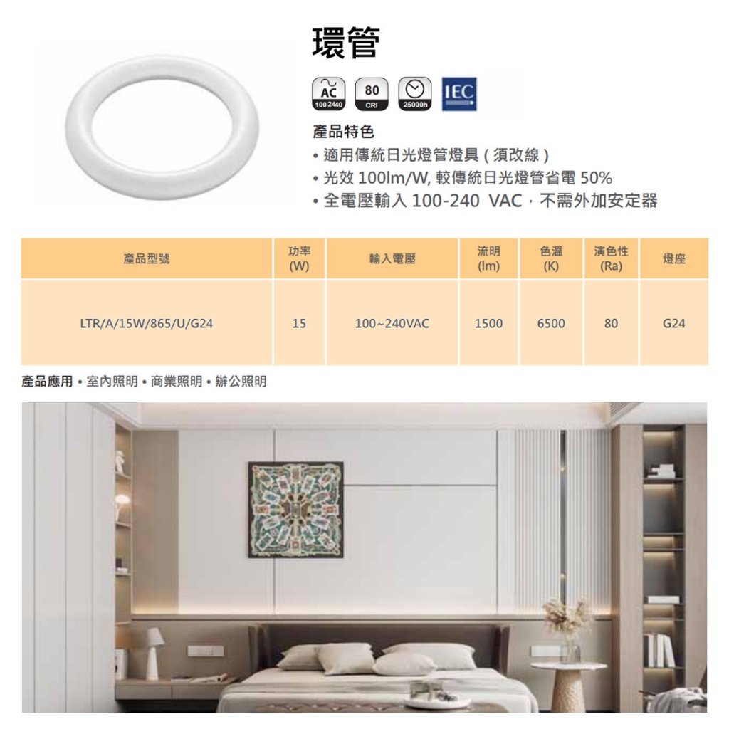 【億光】 LED高效率 環形燈管 15W 圓燈管 白光 可取代30W傳統環型燈管