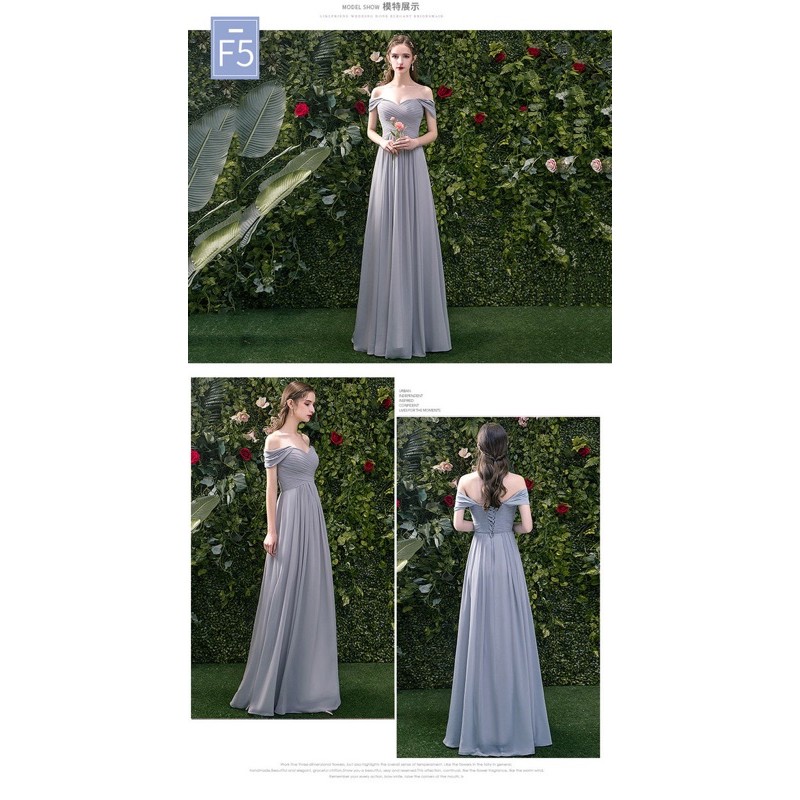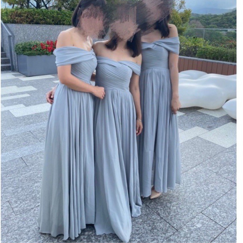 淘寶灰藍色落肩款伴娘服