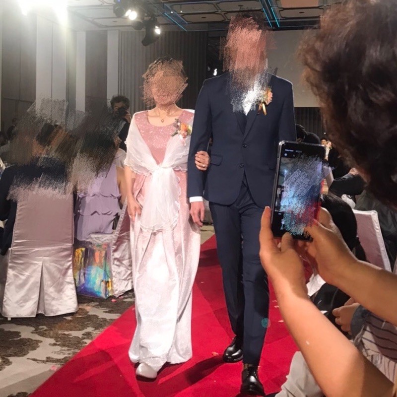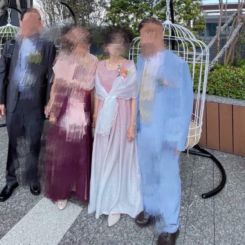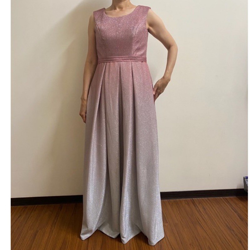 OMUSES 粉色金蔥漸層禮服+白色百搭披肩