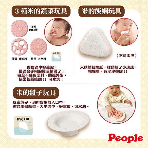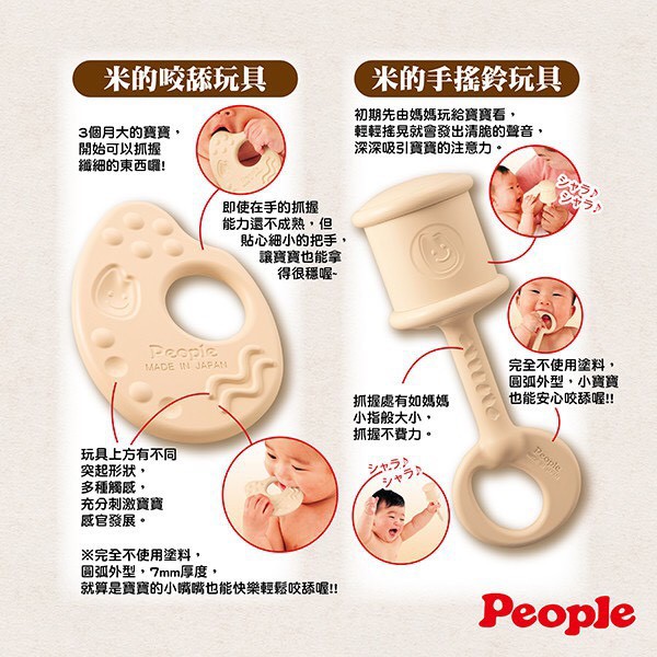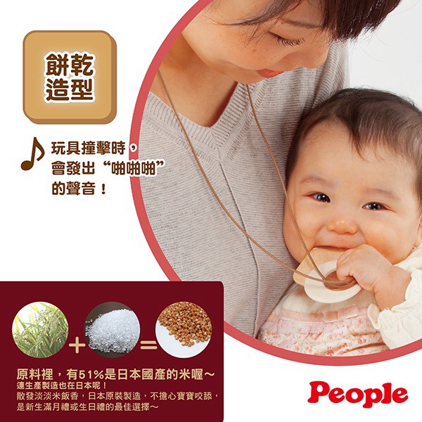 ⭐澄星藥局⭐日本 People 米的玩具 (米製品玩具系列) 米的環狀咬舔玩具 米的洞洞球玩具 固齒器 抓握感官訓練