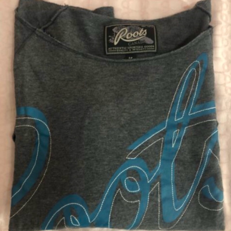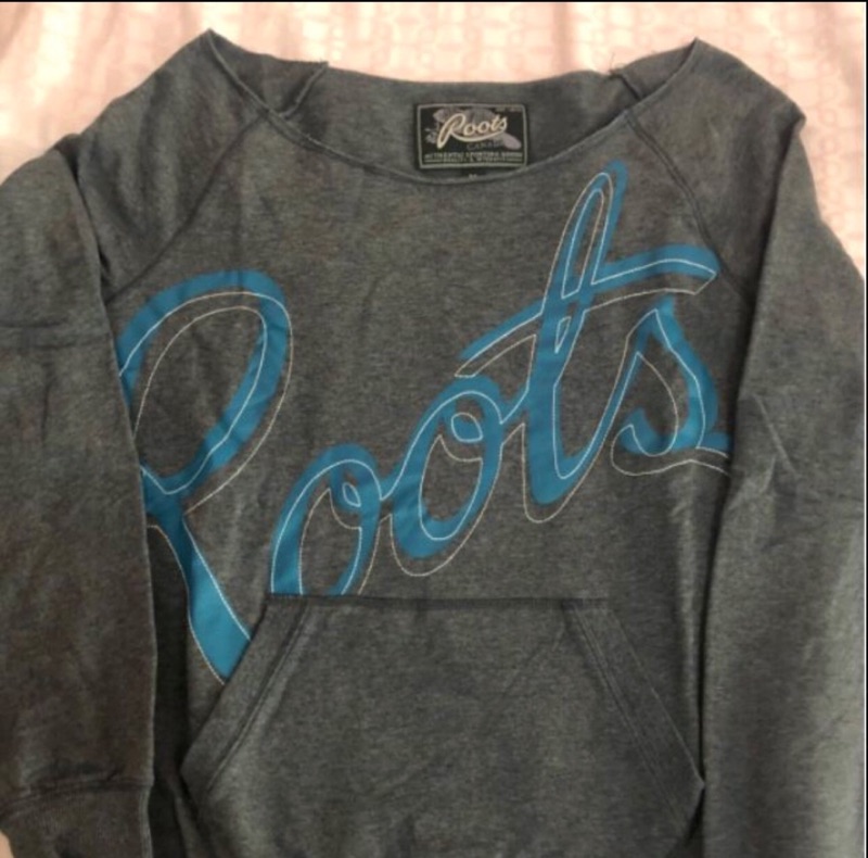 加拿大國民品牌ROOTS 灰色ㄧ字領薄款衛衣
