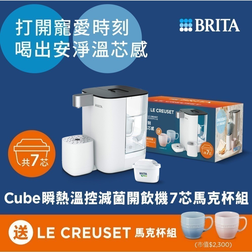 【BRITA官方】Cube MXPRO 瞬熱溫控滅菌開飲機(白)+6入去水垢專家濾芯(共7芯)贈馬克杯