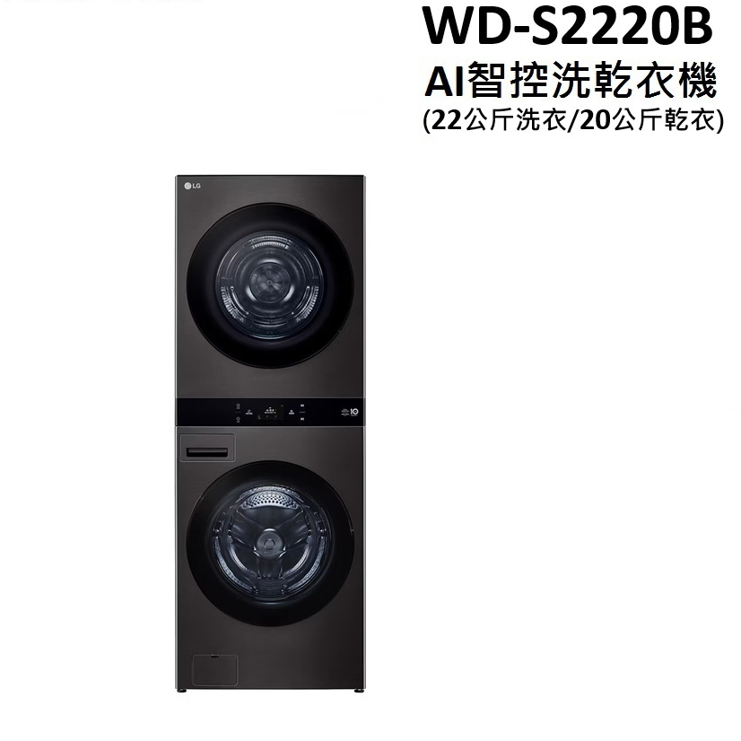 LG 樂金 22公斤+20公斤AI 智控熱泵除濕洗乾衣機-尊爵黑 (WD-S2220B)