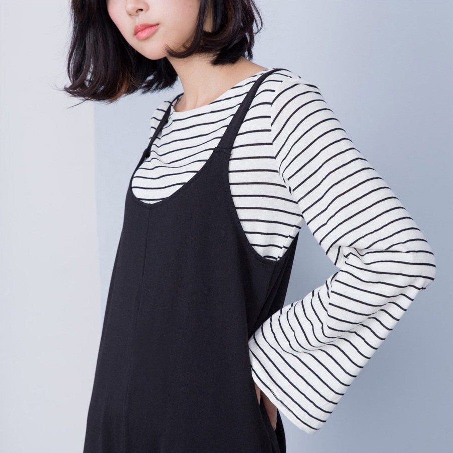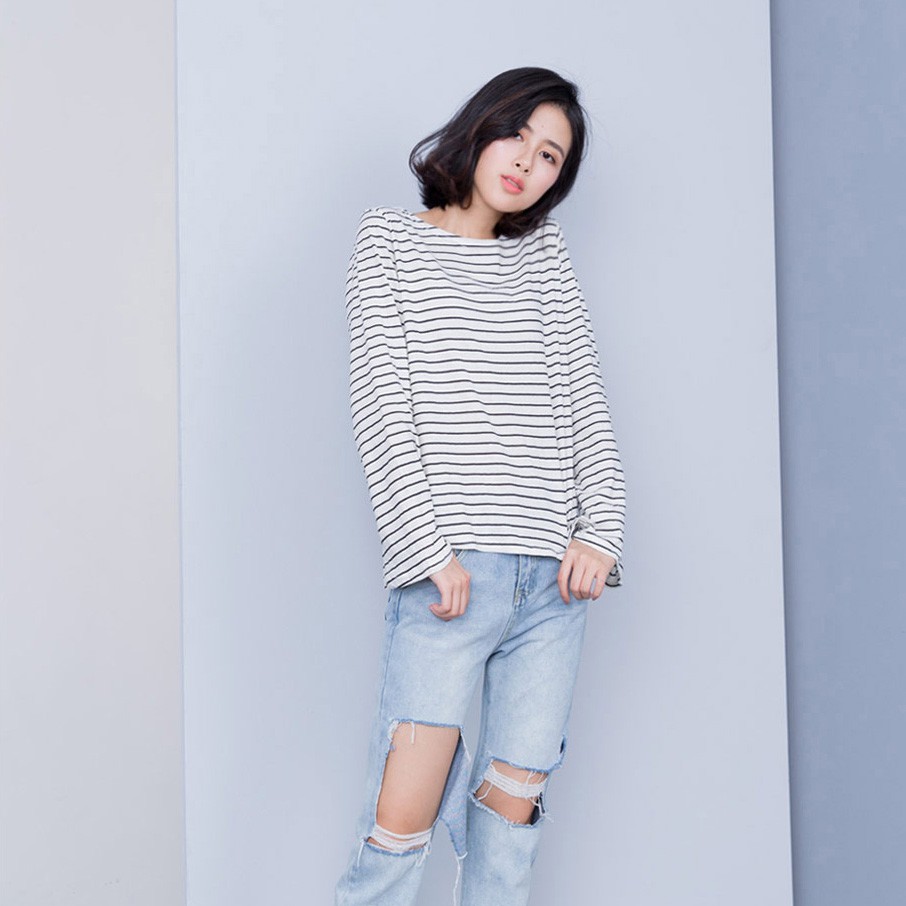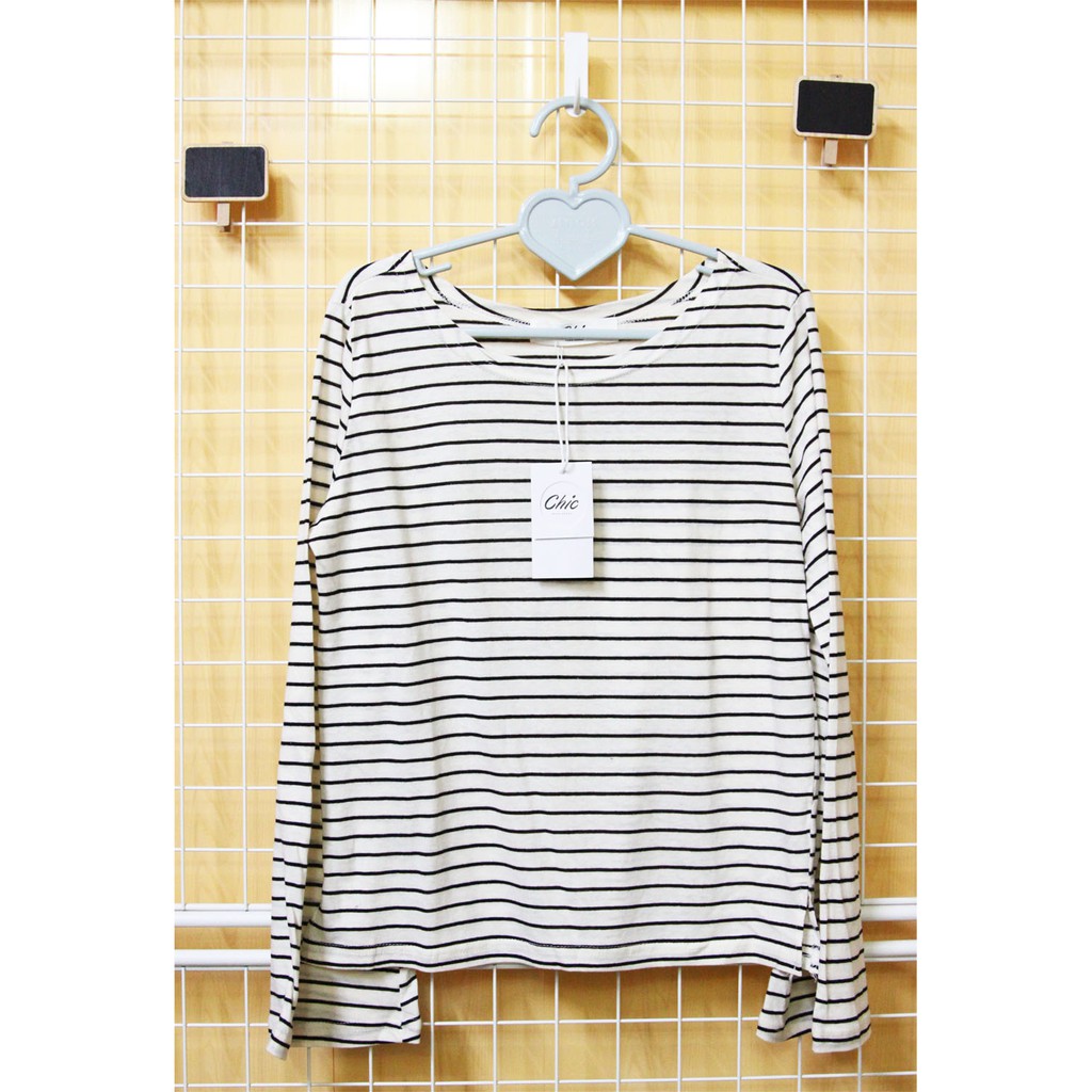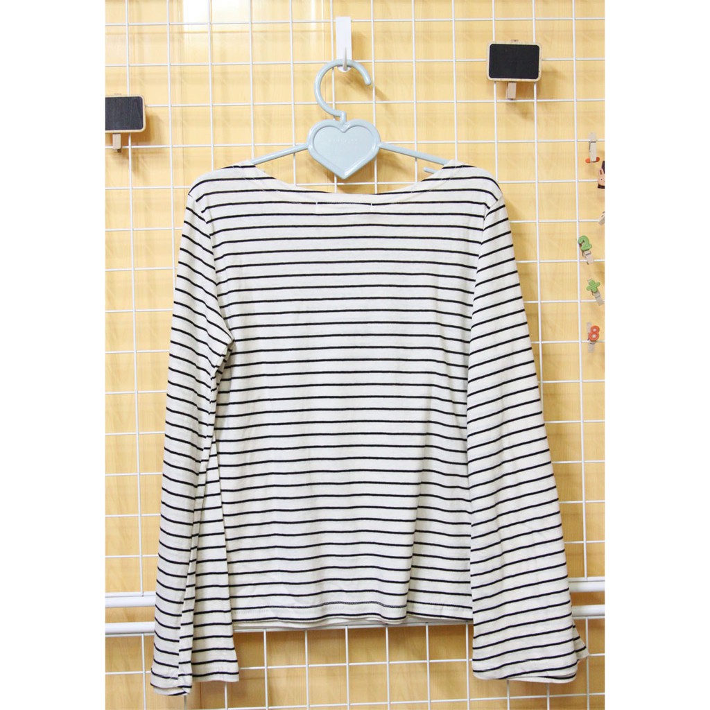 貓咪曬月亮 橫條紋喇叭袖棉薄上衣
