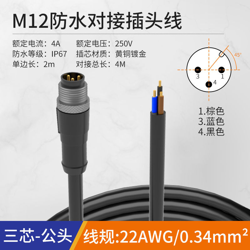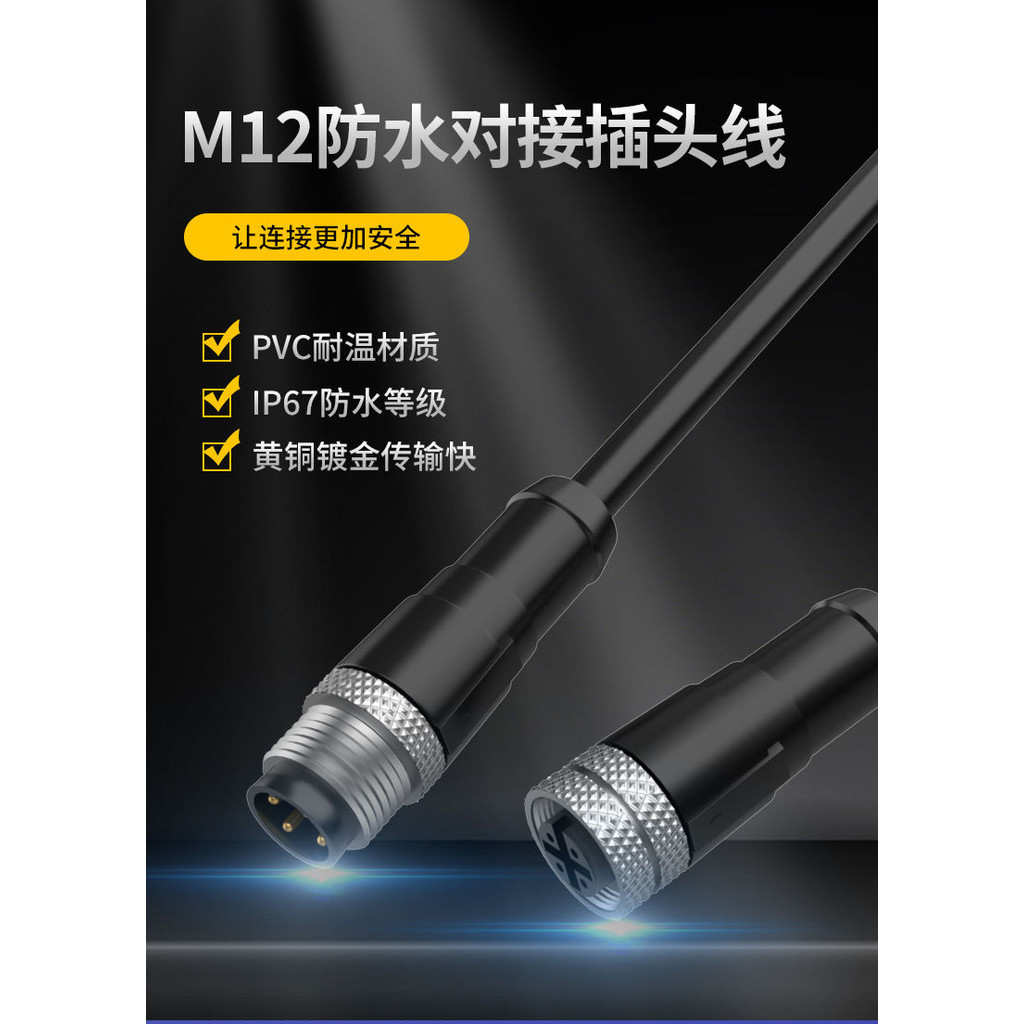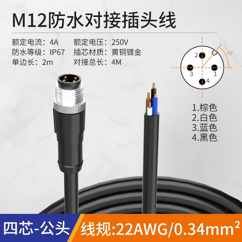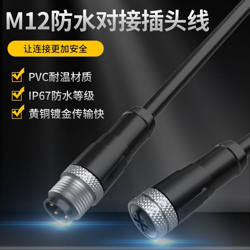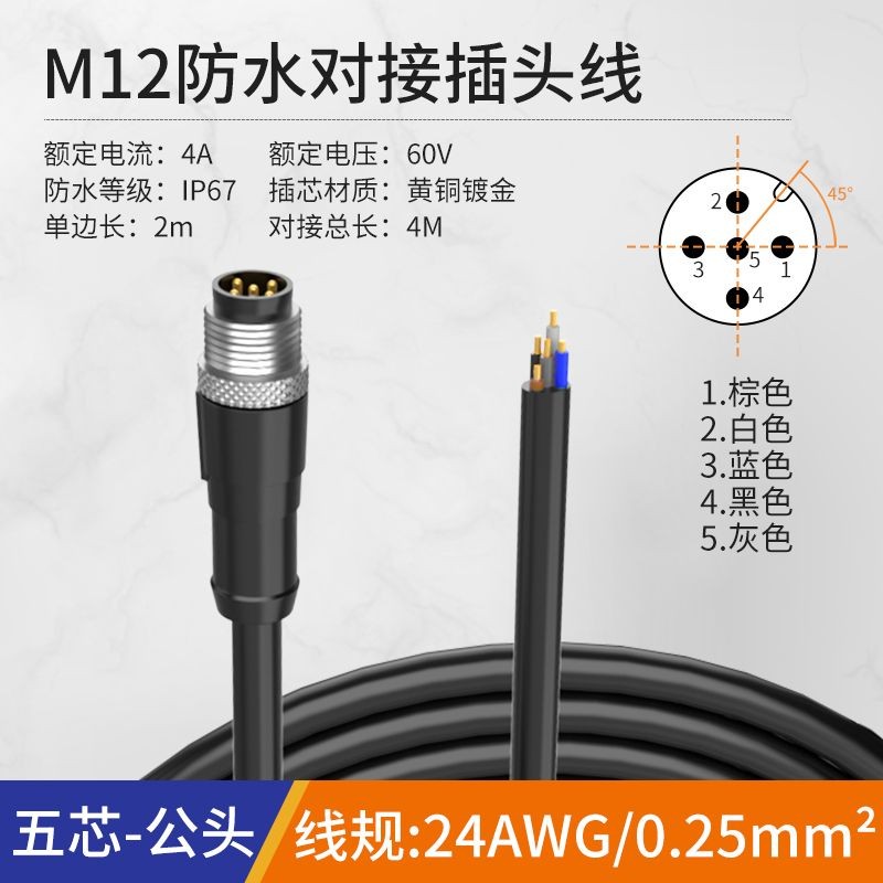 電線防水接頭 公母對接插頭 電源連接器 M12防水連接器航空插頭2 3 4 5芯傳感器工業註膠接頭插座帶綫2米