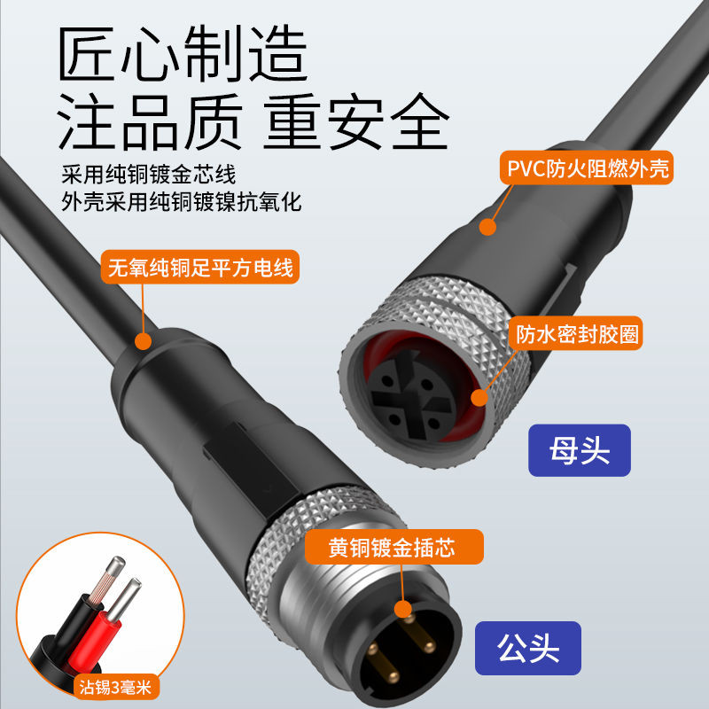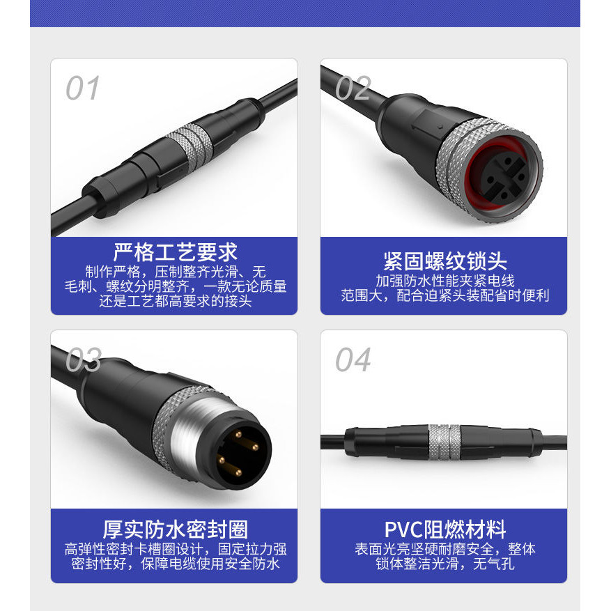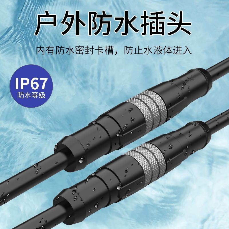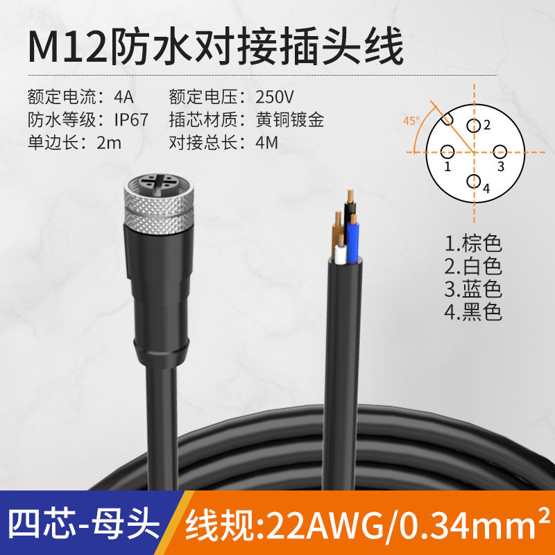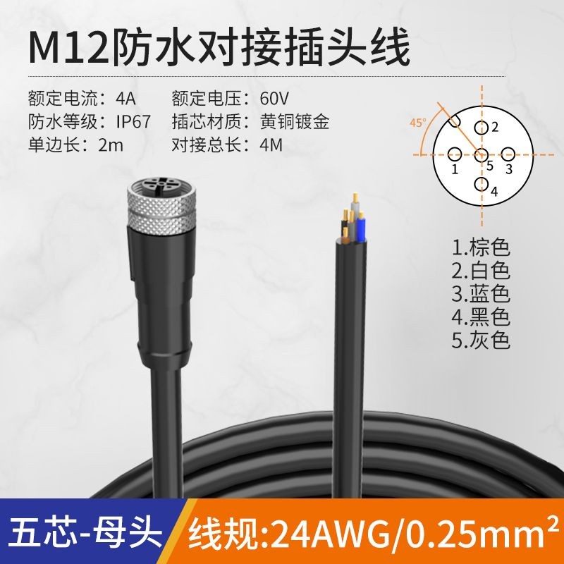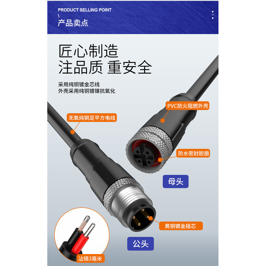 電線防水接頭 公母對接插頭 電源連接器 M12防水連接器航空插頭2 3 4 5芯傳感器工業註膠接頭插座帶綫2米