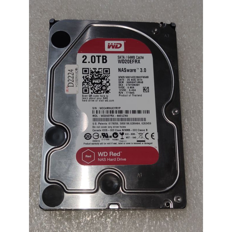 WD 紅標 2TB / 3.5吋SATAIII界面 / 64MB快取 / 無壞軌異聲