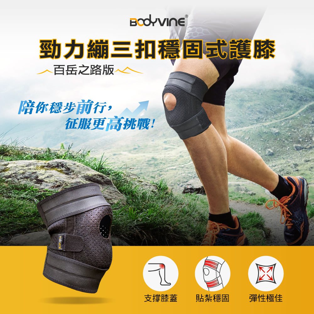 【BODYVINE巴迪蔓】勁力繃三扣穩固式護膝-1只(百岳爬山 紮實包覆 穩固膝關節 運動生活都適用 CT-15700)