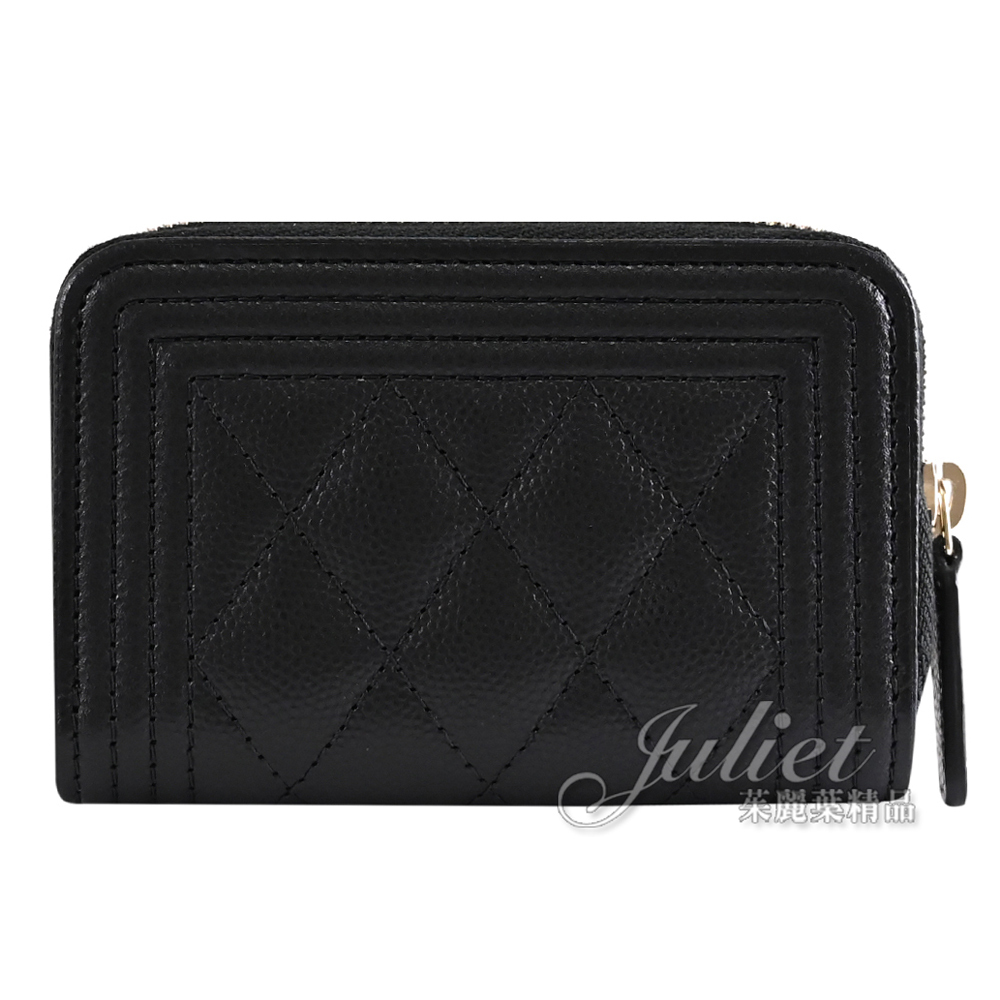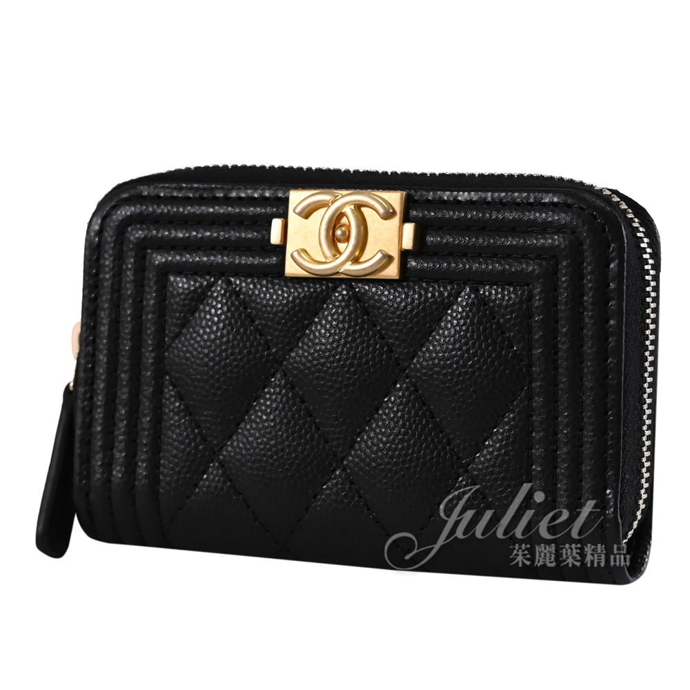 【茱麗葉精品】CHANEL A80602 BOY 經典菱格紋牛皮拉鍊零錢卡包.黑/金 現貨在台
