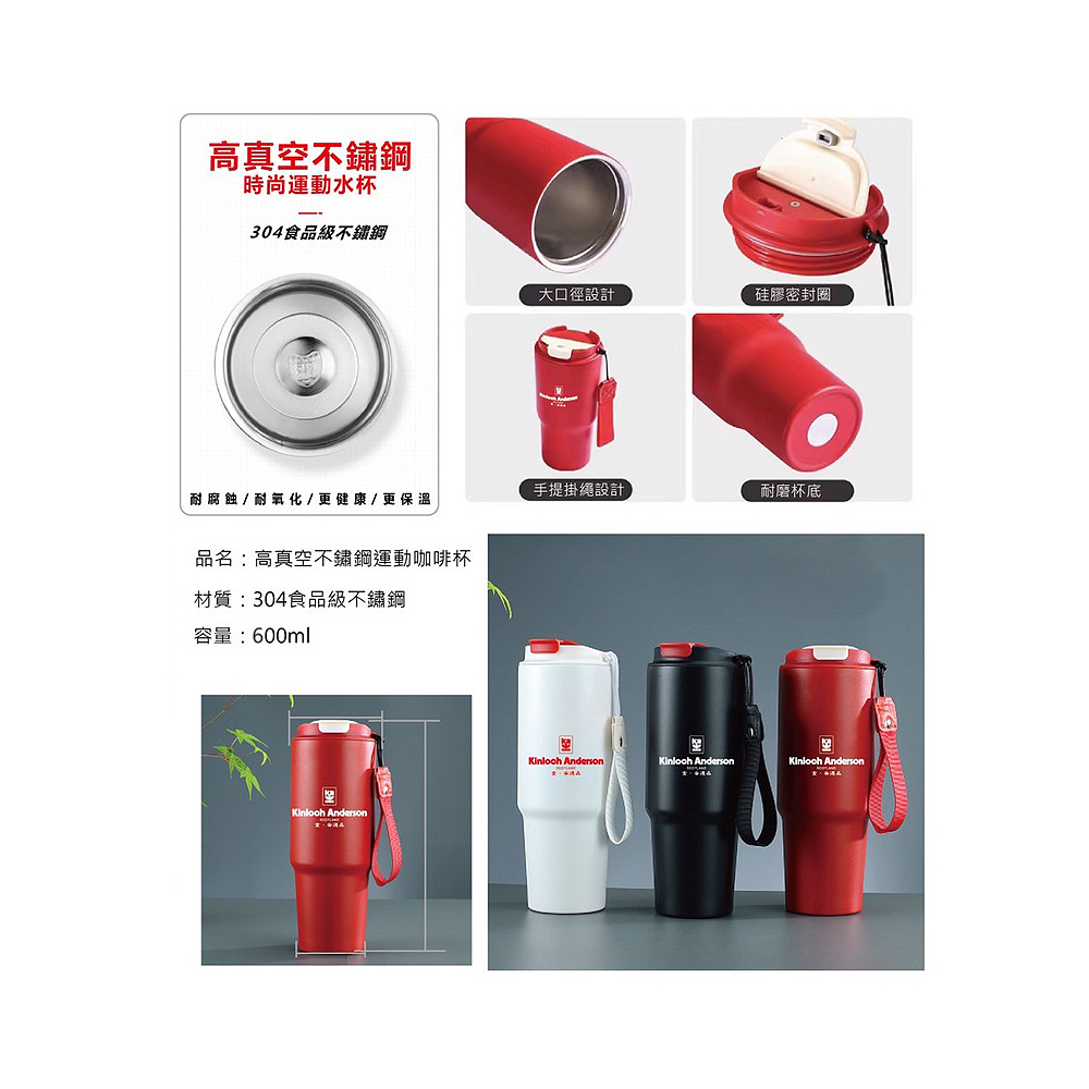 金安德森 304不鏽鋼高真空運動咖啡杯(附提繩)600ml