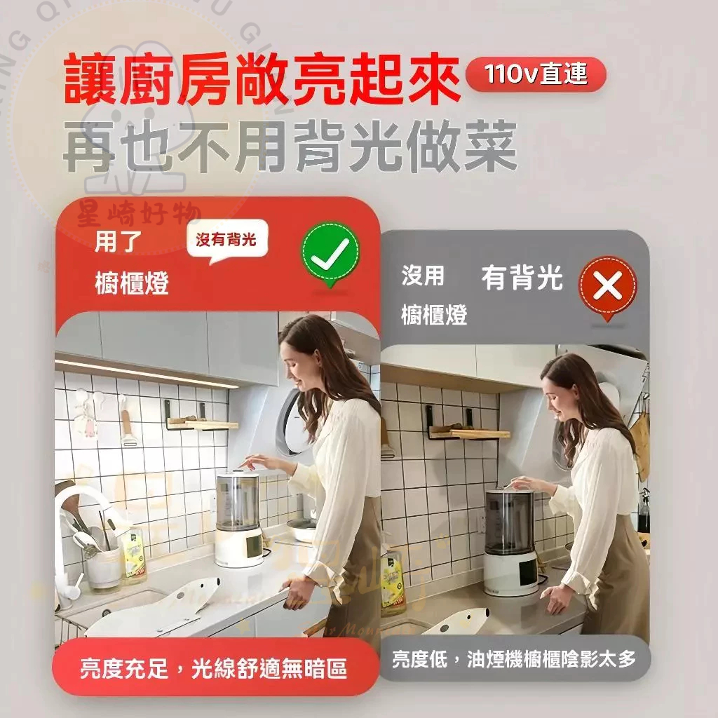 台中現貨✨隔日達 110V 廚房吊櫃下燈條 led燈 COB燈帶 自粘高亮防水 櫥櫃燈 補光照明 長條硅膠燈 櫃底燈