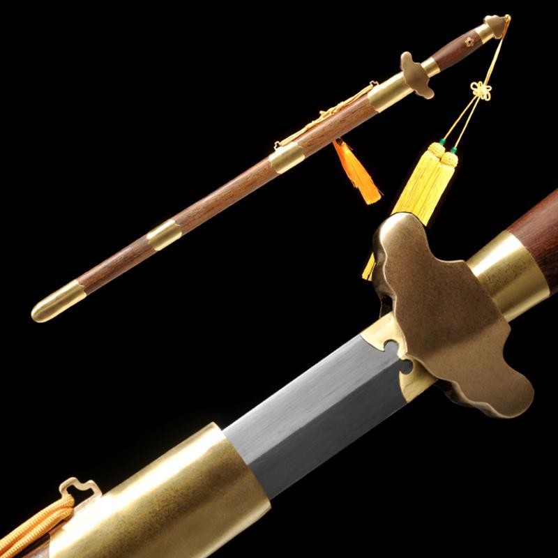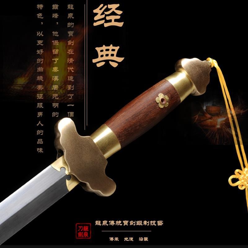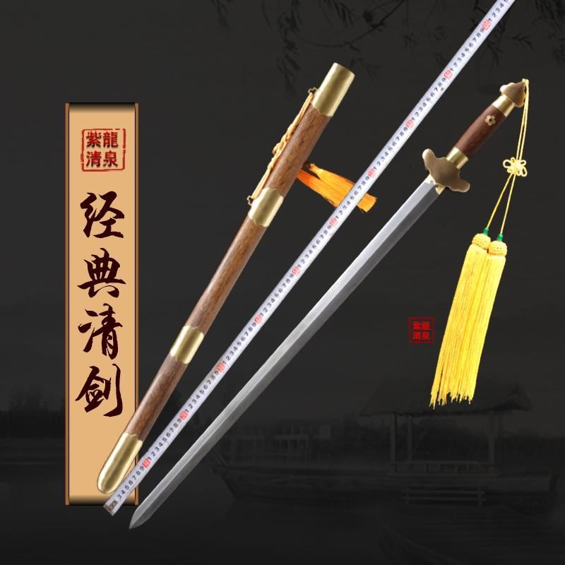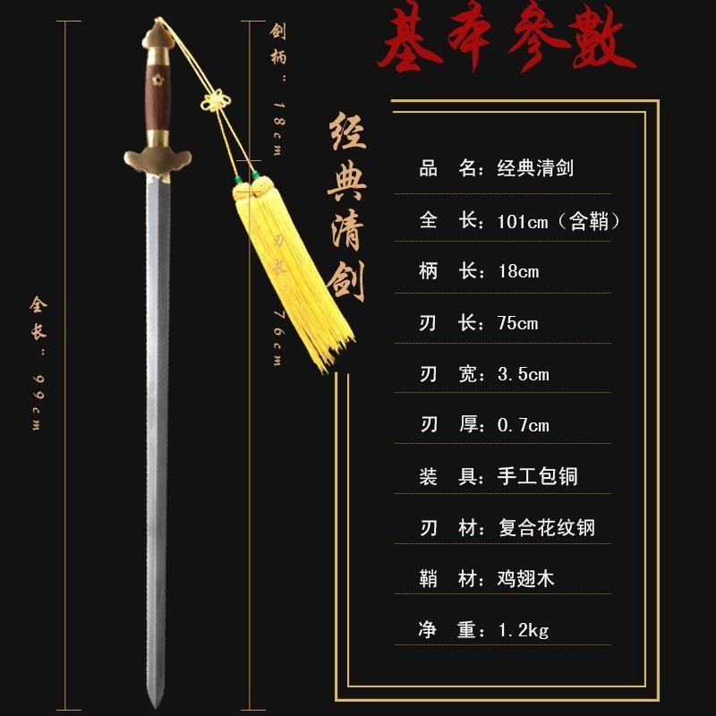 【典藏】龍泉傳統清劍 花紋鋼鍛打 手工包銅 長款硬劍 太極劍 收藏送禮擺設 鎮宅寶劍 晨練武術劍 表演競賽太極劍 未開刃