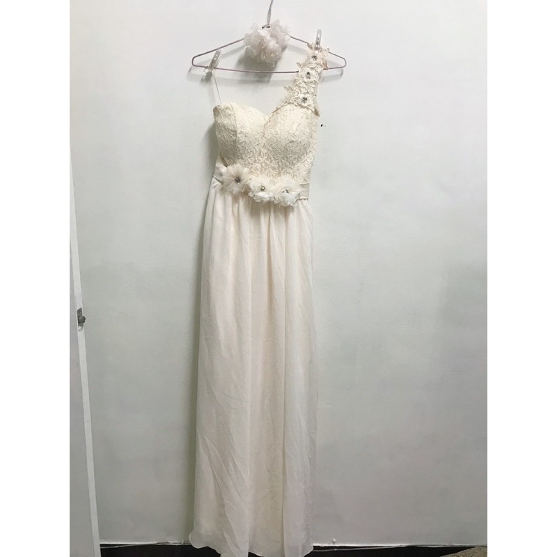 不對稱設計卡肩伴娘服