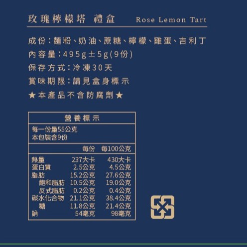 【傳遞幸福】玫瑰檸檬塔-9入禮盒裝《百貨公司頂級甜點》