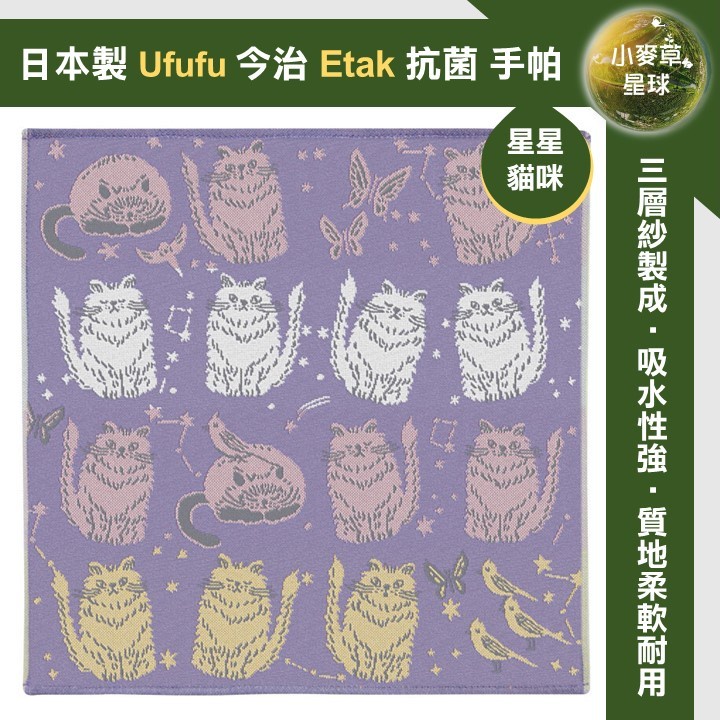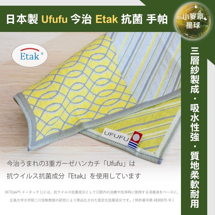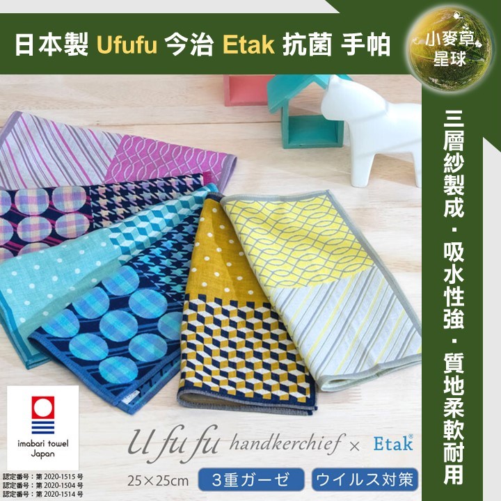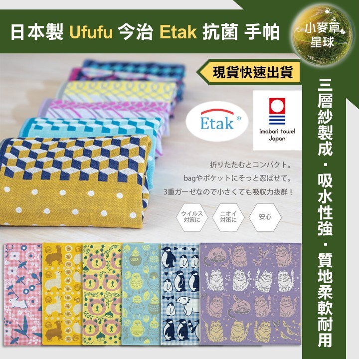 【小麥草星球】🌏現貨🌏日本製 Ufufu 今治織造 抗菌加工 Etak 防病毒處理 手帕 小方巾 毛巾 洗臉 擦汗 禮物