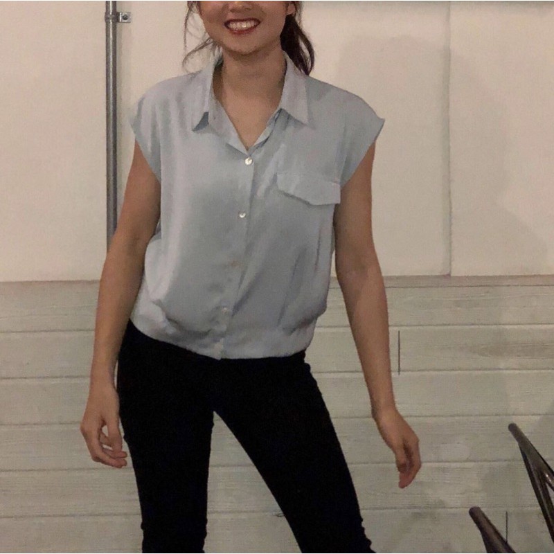 Queen shop 霧藍色 背心 無袖背心 冰絲 絲綢