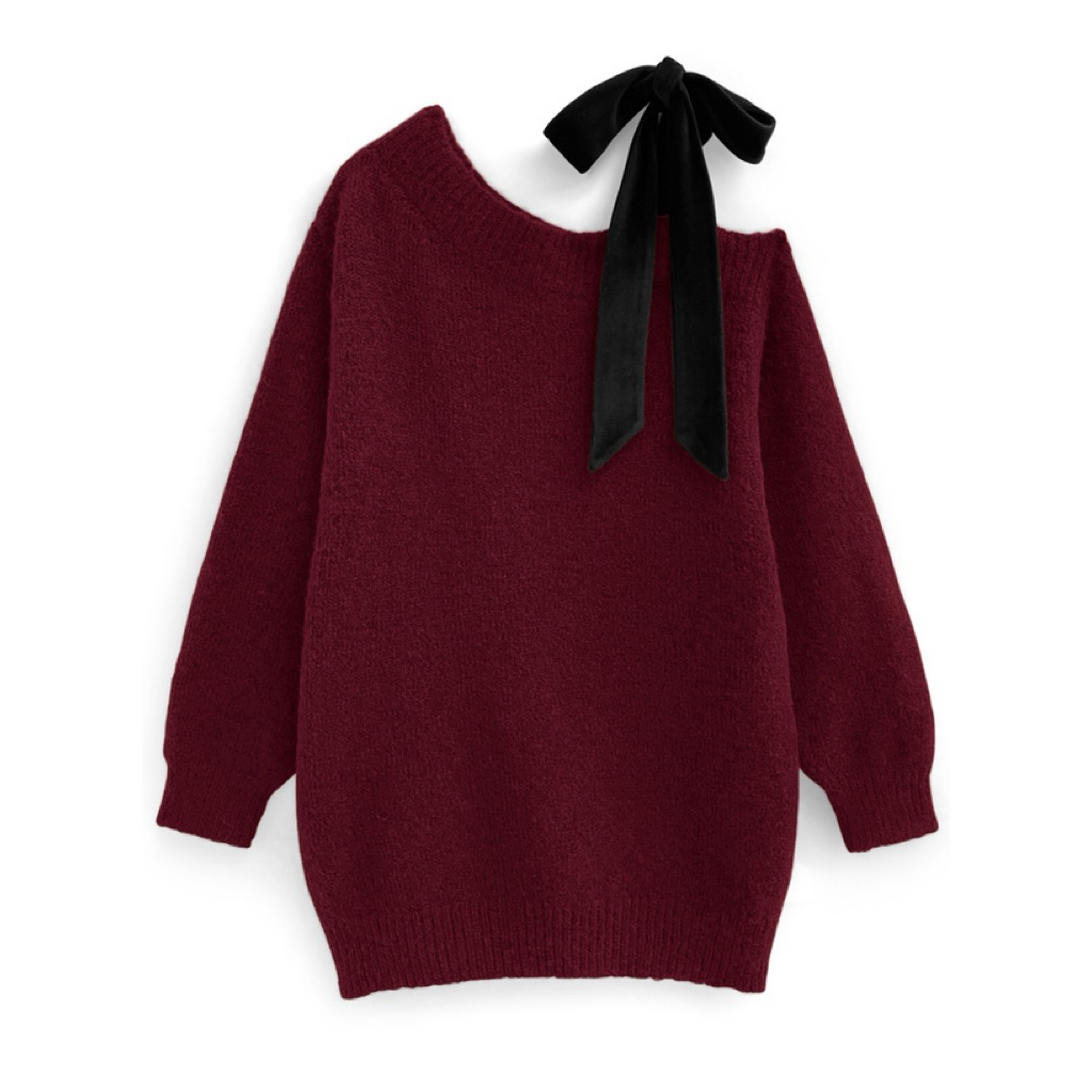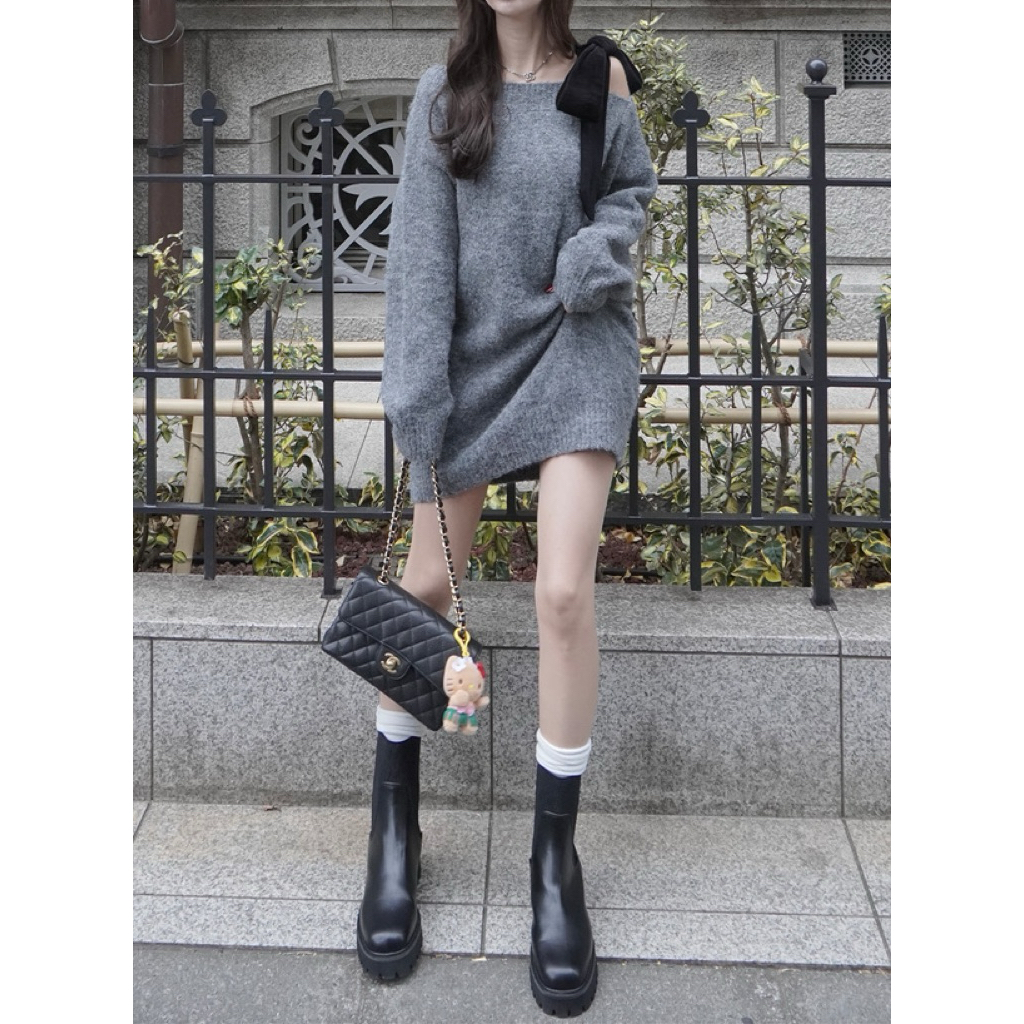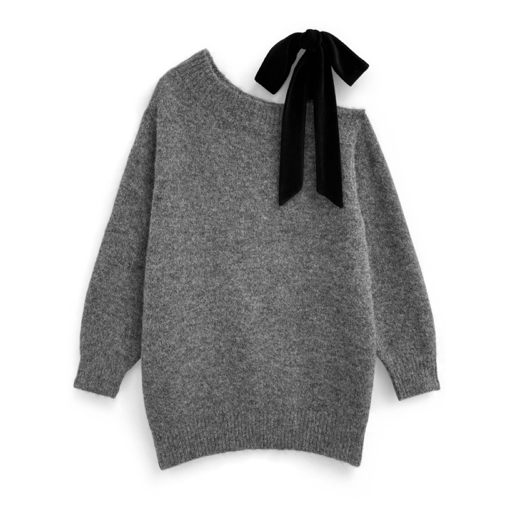 象牙現貨1」日本直送🇯🇵GRL 單肩天鵝絨緞帶針織迷你洋裝 [dr796]