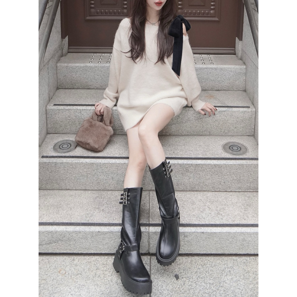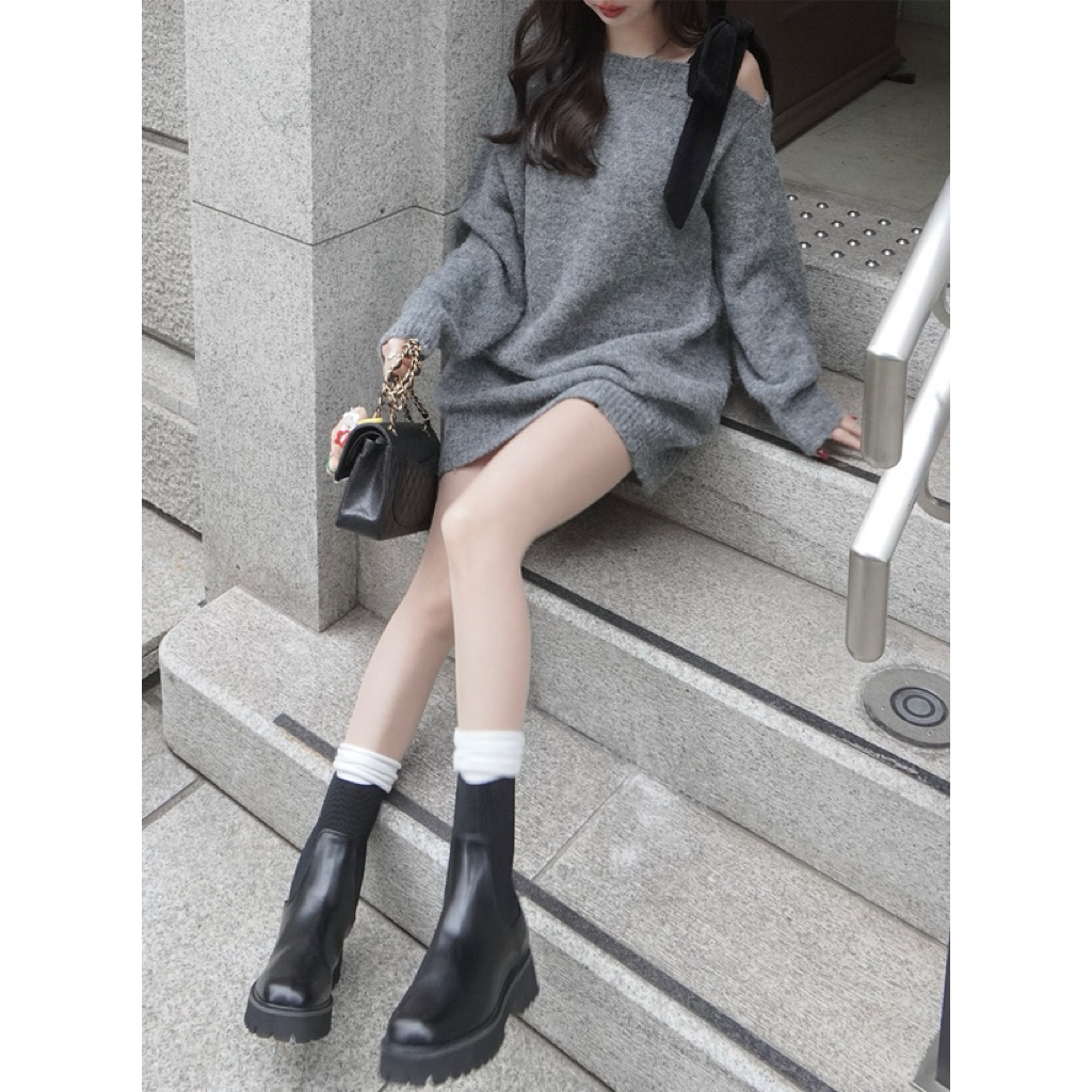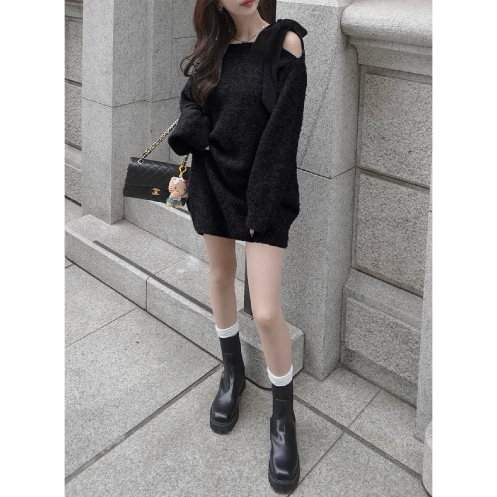 象牙現貨1」日本直送🇯🇵GRL 單肩天鵝絨緞帶針織迷你洋裝 [dr796]