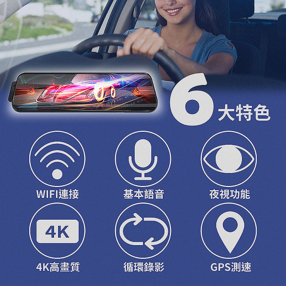 【JINPEI 錦沛】4K超高畫質行車紀錄器、全觸控螢幕、GPS 測速、WIFI連接、語音操作、前後雙錄
