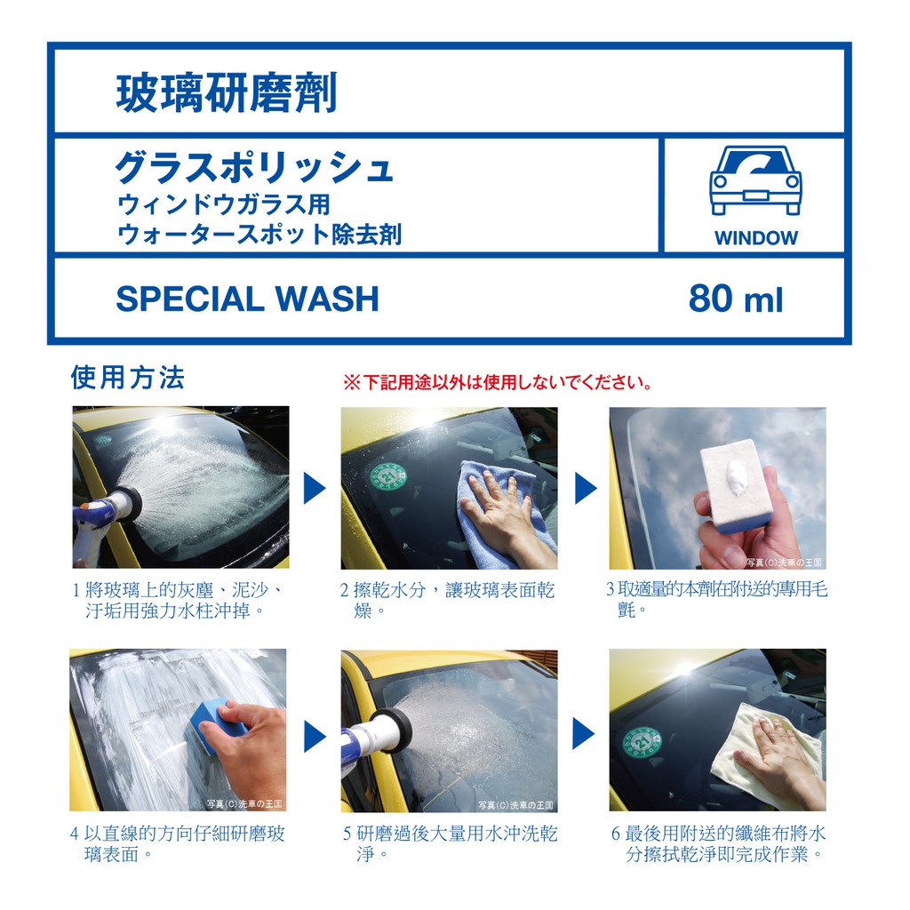[洗車王國] 玻璃研磨劑_日本銷售No.1/ 玻璃清潔 頑固油膜 鱗斑 水垢 水漬 水痕 拋光