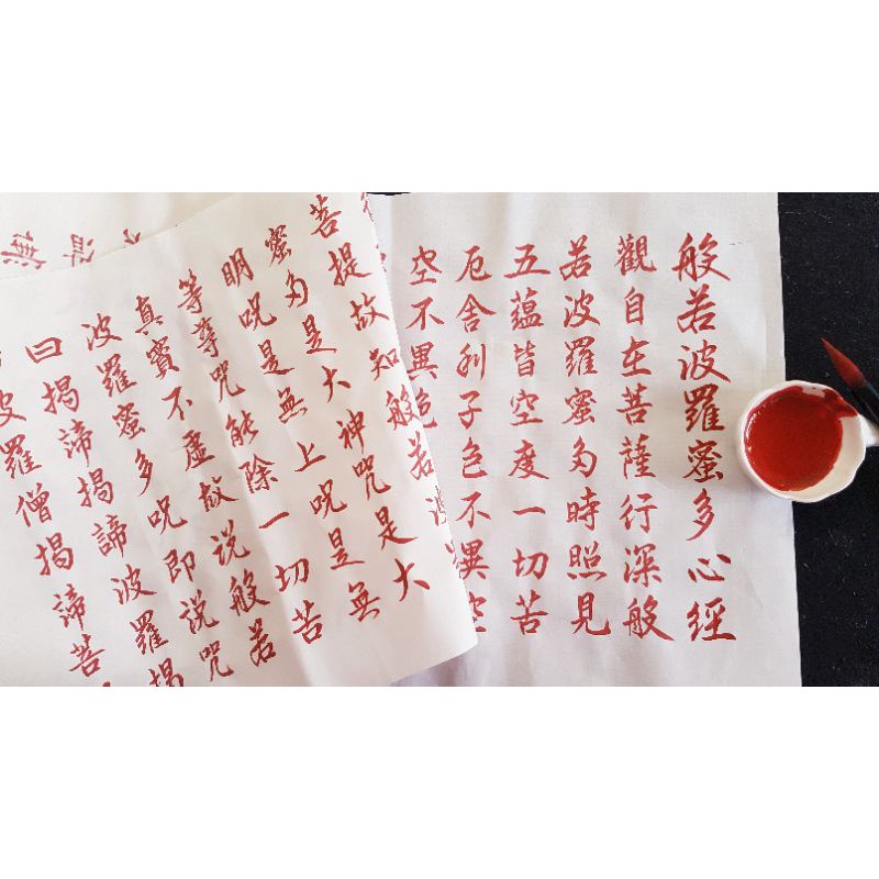 手寫硃砂紅字 / 行楷心經 / 橫式 / 對開 / 可客製