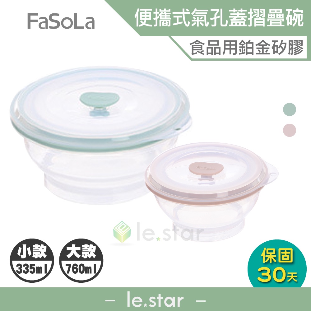 FaSoLa 食品用鉑金矽膠可微波帶氣孔蓋摺疊碗 335ml 760ml 公司貨 微波 摺疊