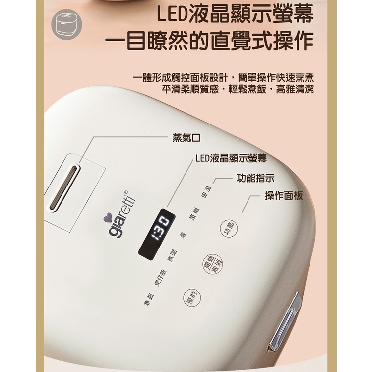 【義大利Giaretti 珈樂堤】三人份微電腦電子鍋-陶瓷塗層內鍋(GT-RCM03)