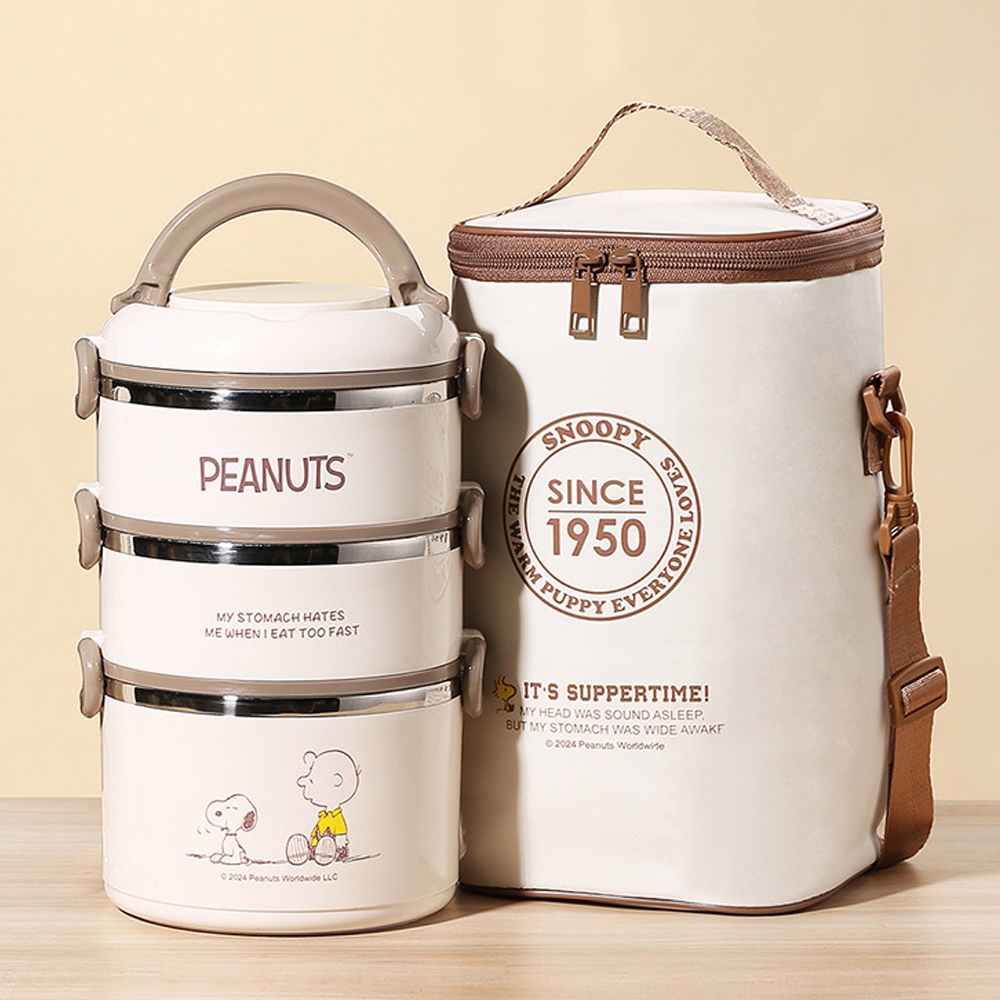 【優貝選】SNOOPY 史努比不鏽鋼三層便當盒套組2600ML