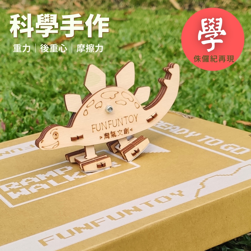 『自走劍龍』侏羅紀系列 不插電 DIY 科學玩具 Ramp walker /會自己從斜坡上面走下來的神奇木作恐龍/