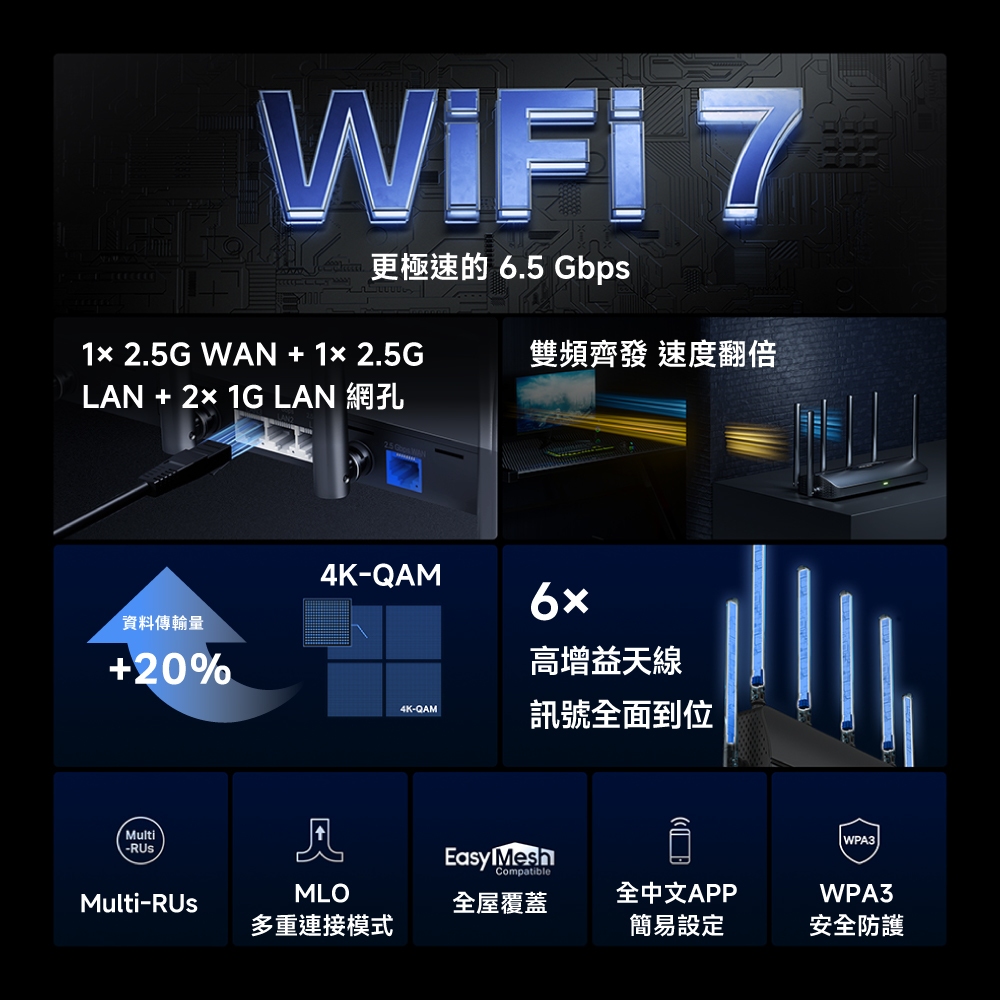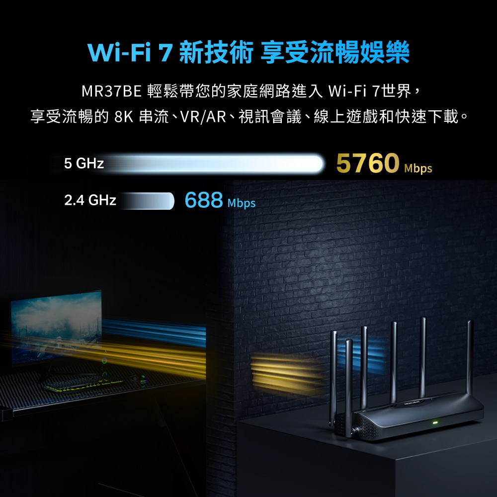 (Wi-Fi7)Mercusys水星網路 MR37BE BE6500 雙頻 Wi-Fi7 wifi分享器 路由器