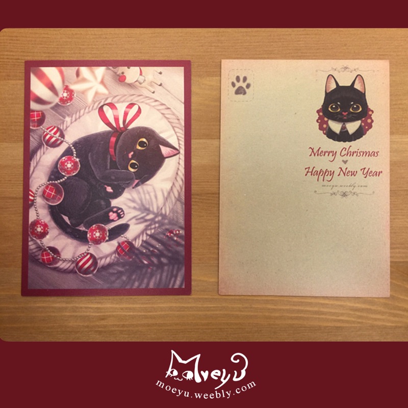 【搖滾喵喵】原創◆聖誕貓明信片◆黑貓